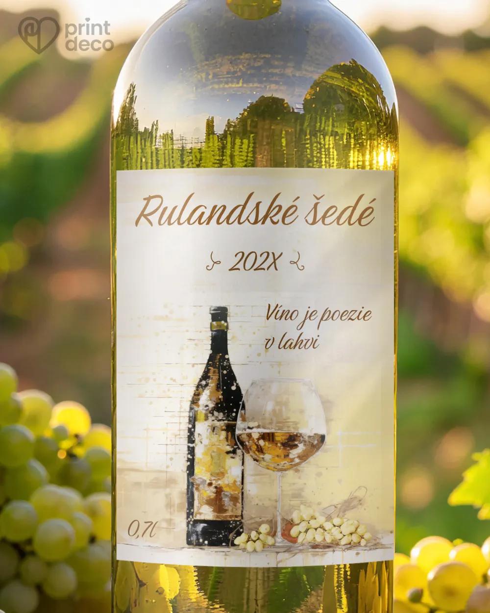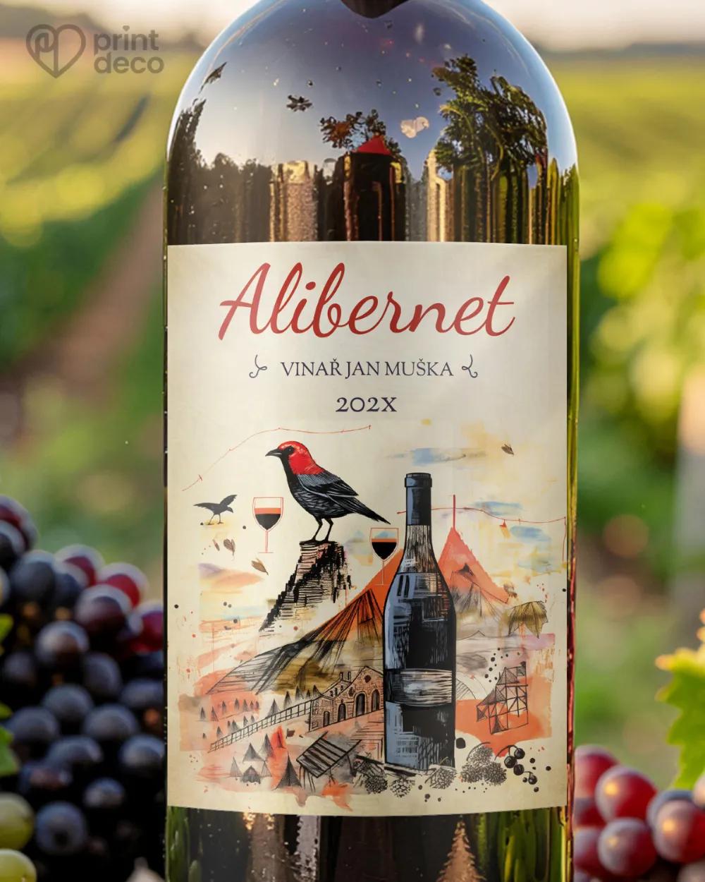 Samolepicí etikety na víno s originálním uměleckým motivem jsou tištěny na míru. Text lze upravit podle vašich požadavků, personalizace zdarma v online editoru.