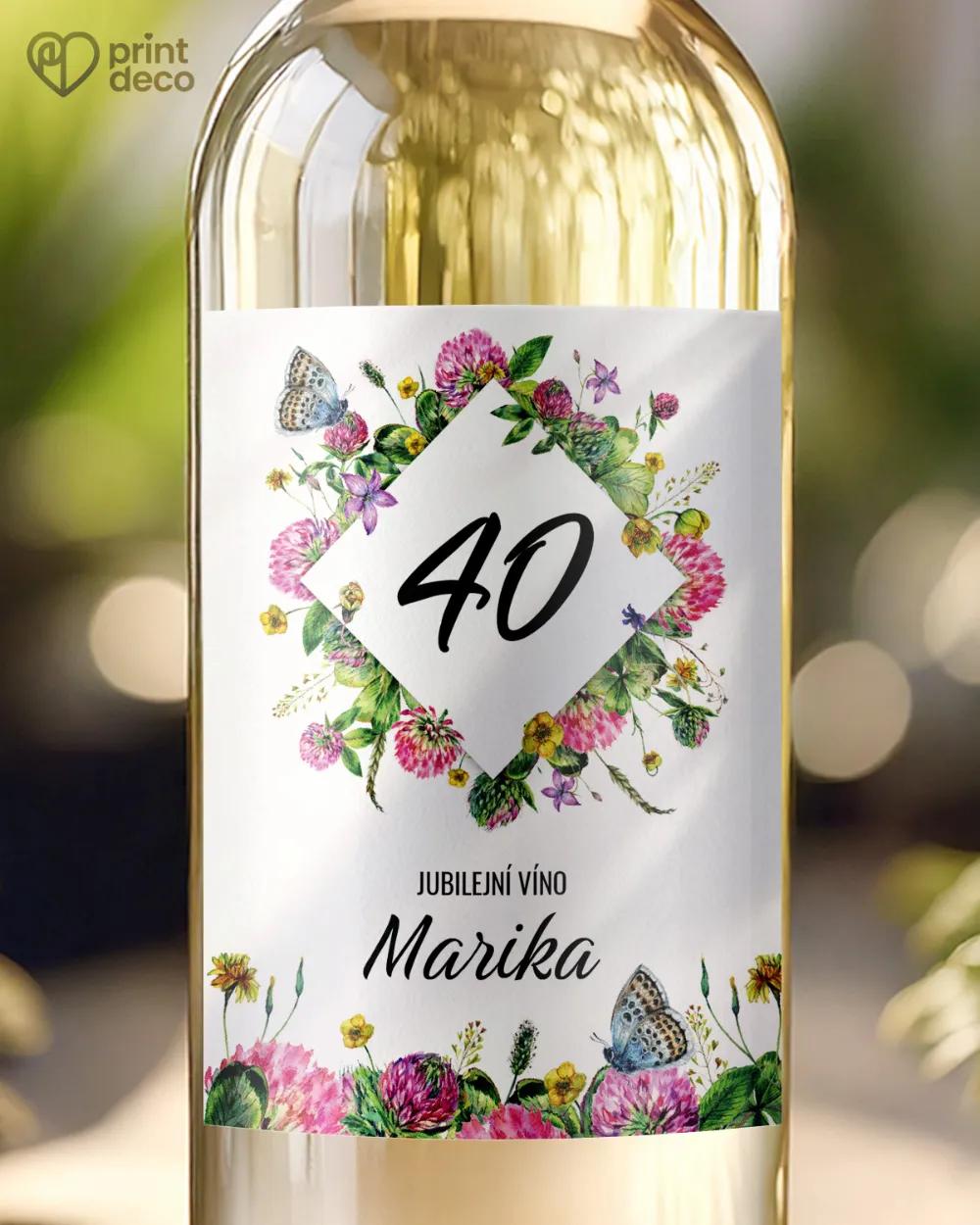 Greenery etiketa na víno či pálenku s elegantními větvičkami. Personalizace online, expresní výroba, ideální na oslavu jubilea.