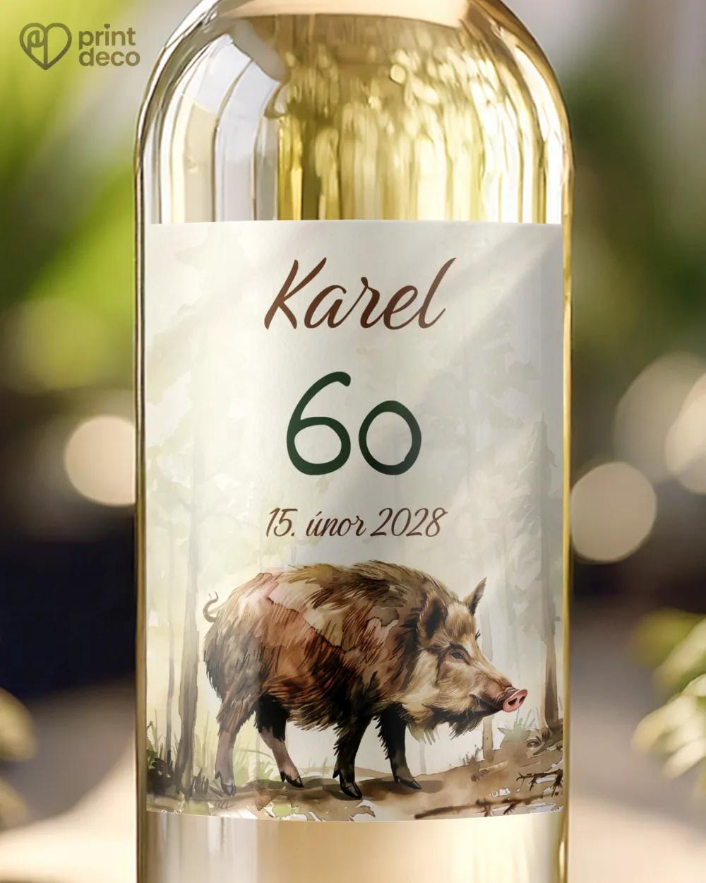 Etiketa na víno s motivem jelena v slunečním lese je ideální pro milovníky přírody, myslivosti či lesní atmosféry. Přidáme jméno, věk a datum podle přání – online úprava zdarma. Vhodná jako výslužka i jako stylová dekorace oslavy. Možnost kombinace s menovkami a pozvánkami ve stejném motivu. Tisk probíhá expresně a s důrazem na kvalitu.