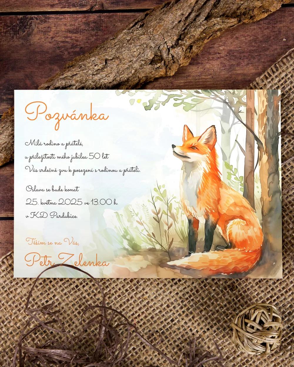 Etiketa s uměleckým kresbou lišky sedící v přírodě je dokonalým doplňkem na víno k oslavě životního jubilea. Elegantní motiv pro milovníky přírody, myslivce či výjimečné designy. Vhodná jako dekorace na stůl i na lahve jako výslužka pro hosty. Možnost online úprav textu, expresní výroba a kombinace s dalšími tiskovinami ve stejném stylu.