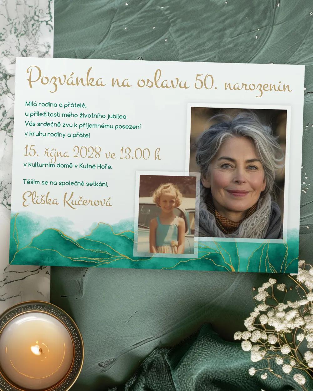 Ve stejném stylu si můžete doladit celou sadu tiskovin – výroční pozvánky, památeční magnetky nebo etikety. K dispozici je expresní výroba a možnost online úpravy zdarma – vše vyřídíte rychle a bez starostí.