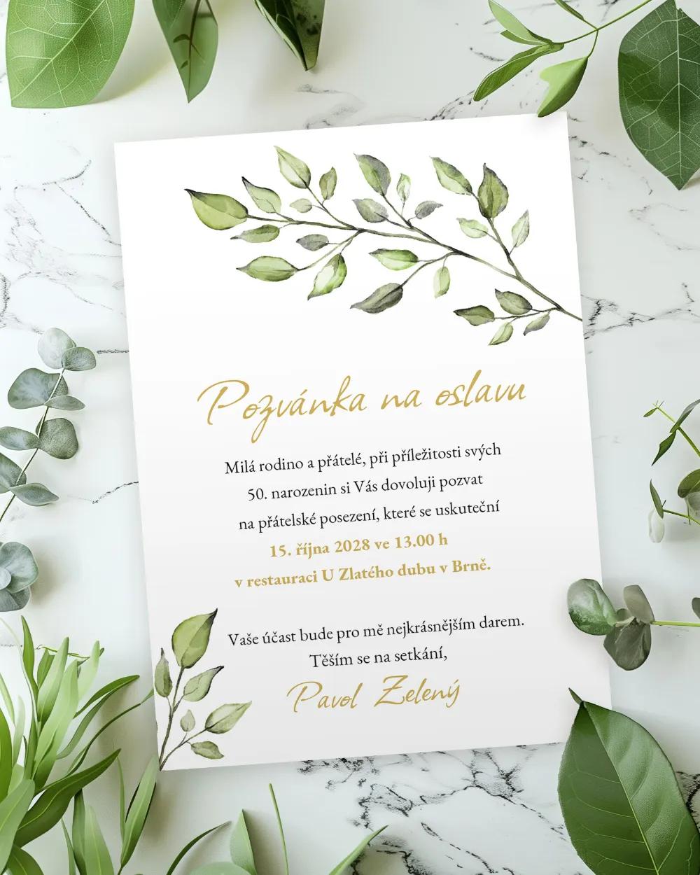Elegantní menovky s akvarelovými větvičkami v greenery stylu. Vhodné na jubileum. Expresní tisk, úprava zdarma, ladí s dalšími tiskovinami.