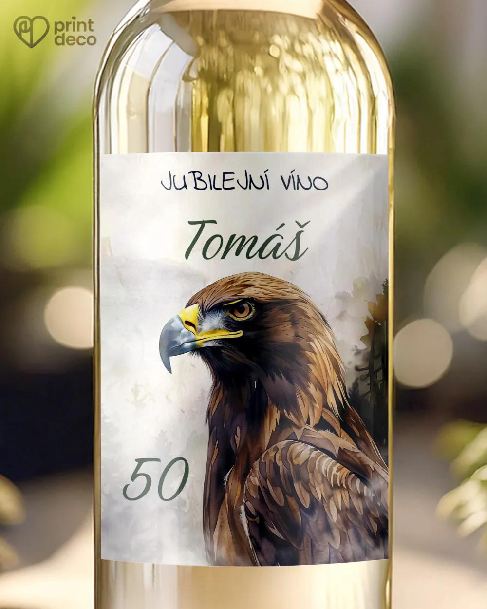 Jmenovky s výrazným motivem hlavy orla – důstojná výzdoba na jubileum. Vhodné pro myslivce, expresní tisk, online úprava zdarma.