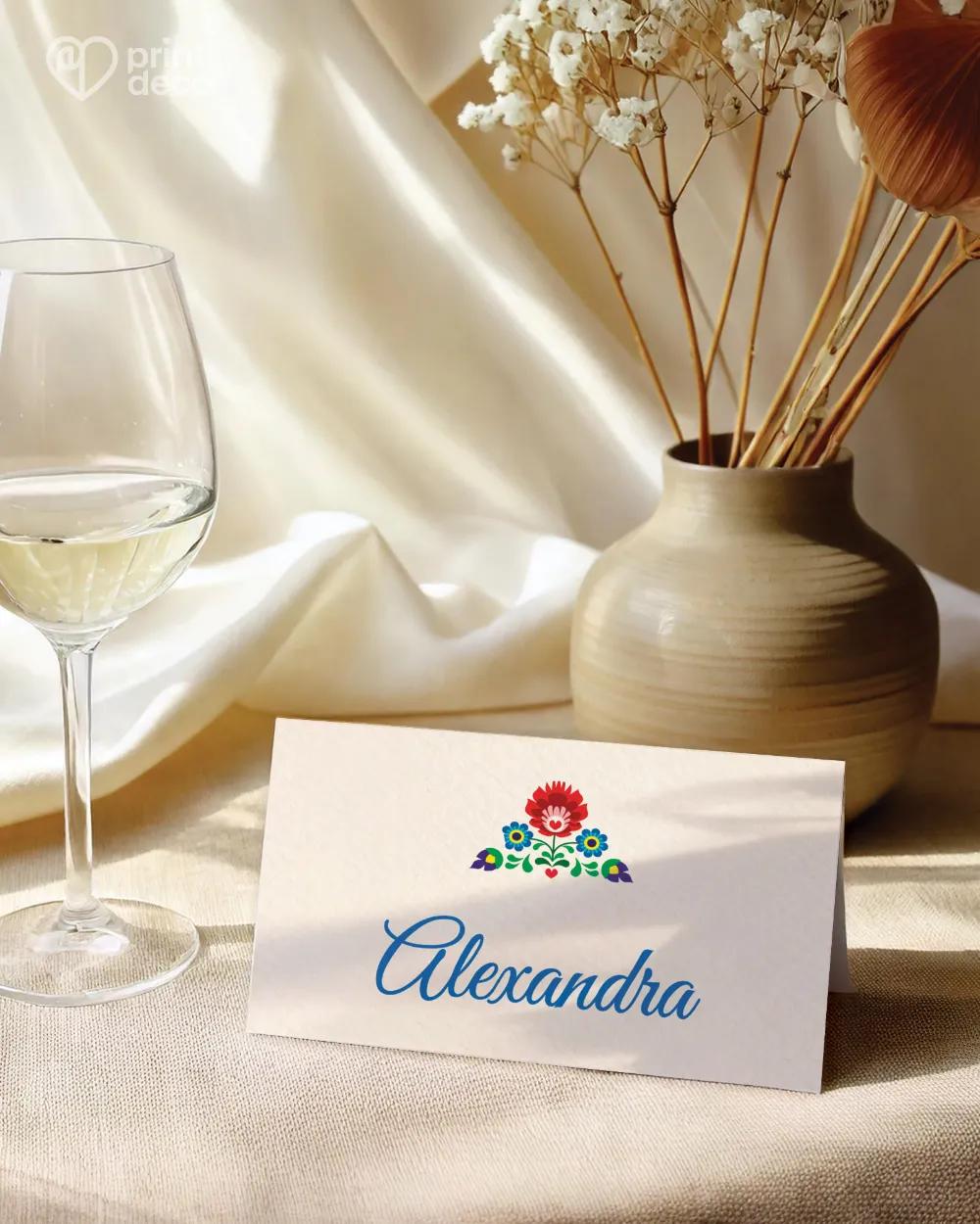 Jmenovky pomáhají s organizací sezení a zároveň dodají stolu jednotný a vkusný vzhled. Tento motiv lze jednoduše sladit s dalšími produkty ve stejném stylu – například s pozvánkami, etiketami na lahve nebo památečními magnetkami.