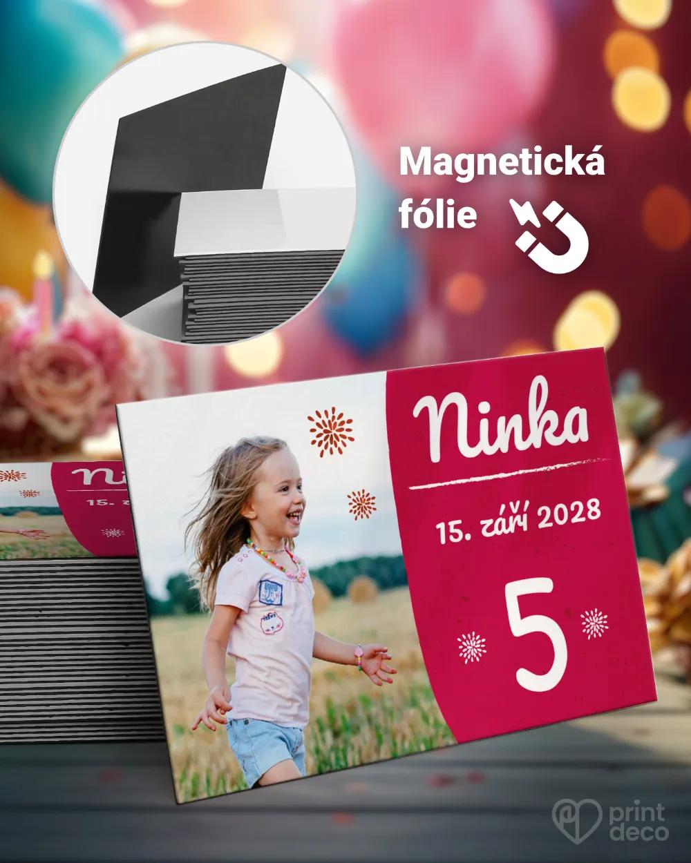 Modrá magnetka s fotkou a jednoduchým designem jako vzpomínka pro rodinu a kamarády z narozeninové oslavy. Úprava zdarma, expresní výroba, vysoká kvalita.