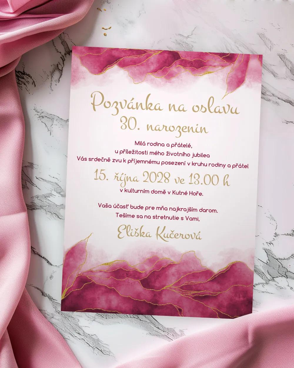 Pamětní magnetka v růžové se zlatými detaily. Personalizace zdarma, originální dárek pro hosty, expresní výroba.