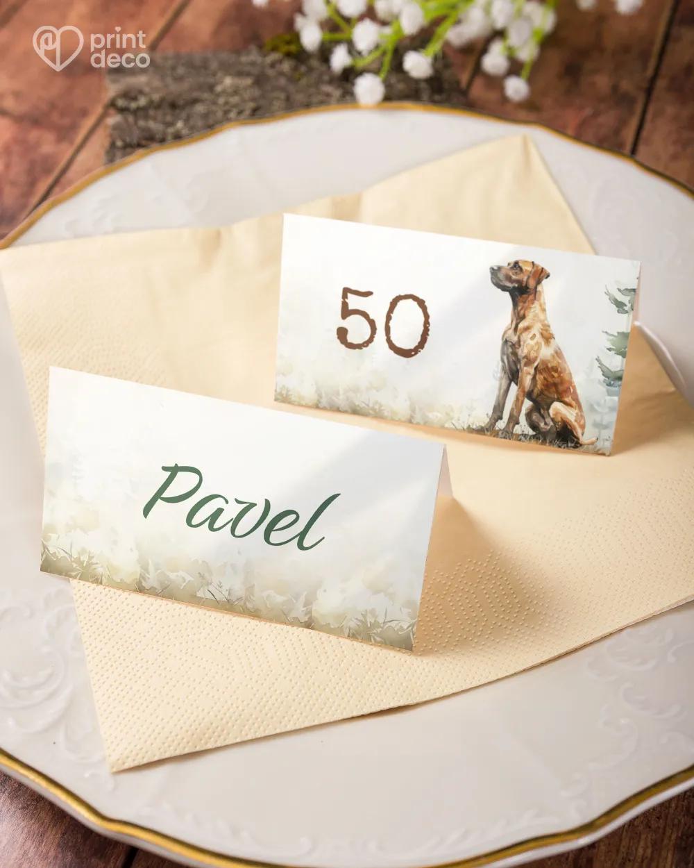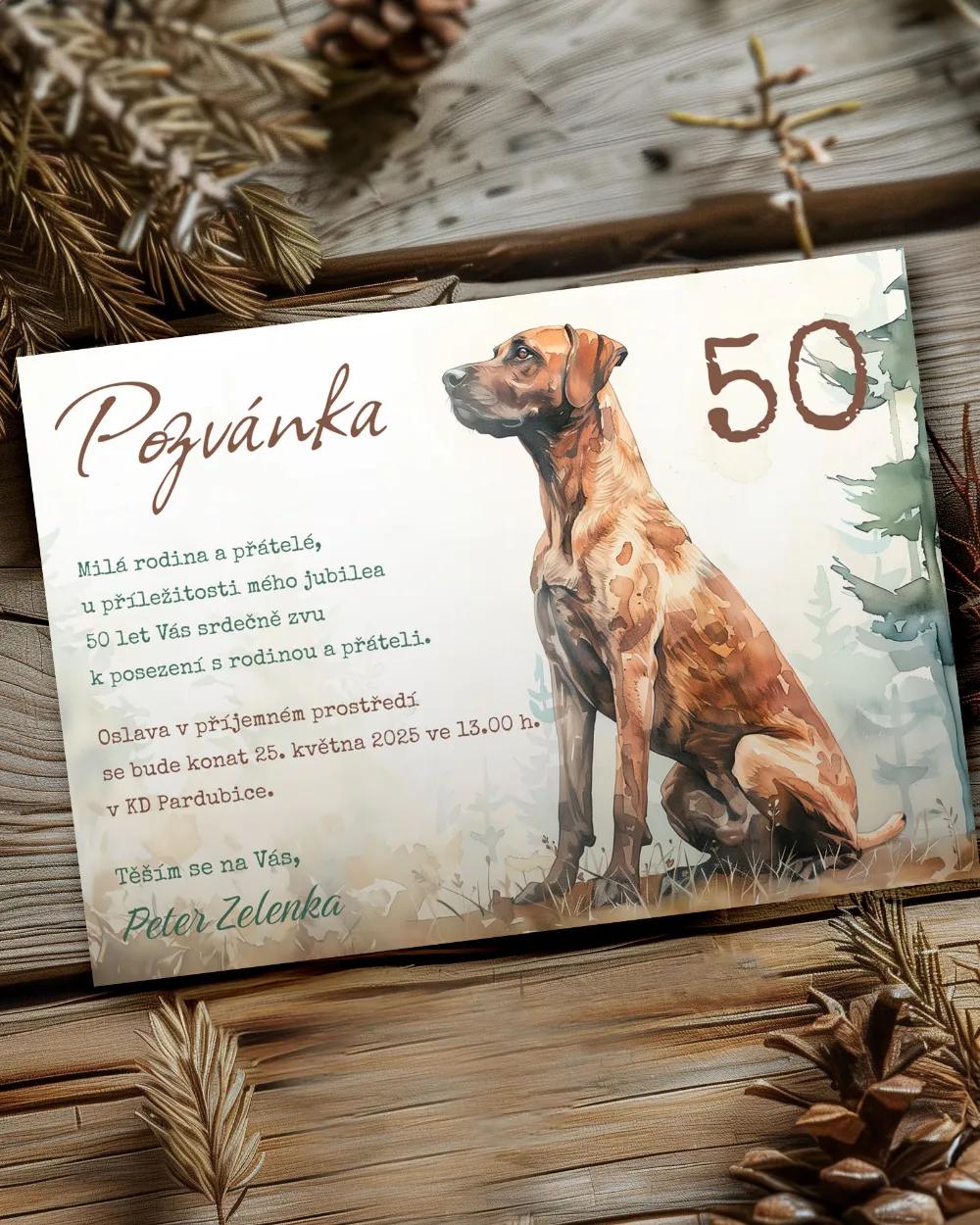 Stylová pamětní magnetka s motivem ridgebacka v lesním prostředí je ideálním dárkem pro hosty i památkou pro oslavence. Motiv ocení především myslivci a milovníci psů. Personalizovaný text s jménem, věkem a datem oslavy si upravíte jednoduše online zdarma. Magnetka je tištěna na kvalitní magnetickou fólii a můžete ji kombinovat i s dalšími mysliveckými tiskovinami stejného stylu – etikety, jmenovky či pozvánky. Vyrábíme expresně a profesionálně.