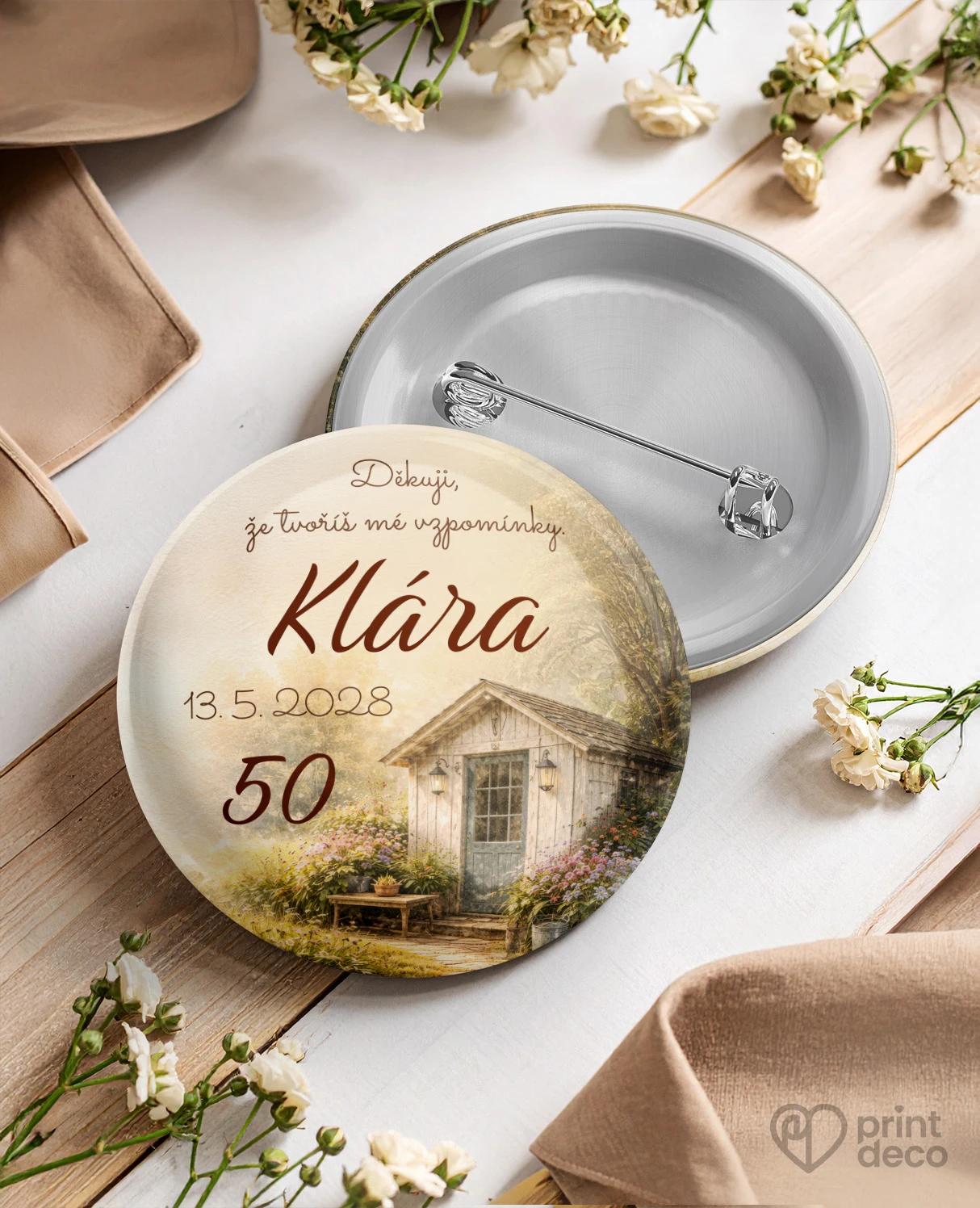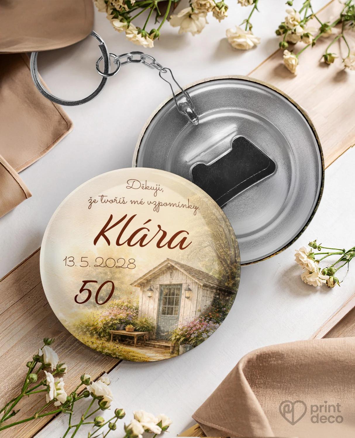 Kruhová kovová magnetka (placka) s květinovým motivem rozkvetlé zahrady a květináčů plných barevných květů přináší jemnou atmosféru klidu, radosti a přírody. Ilustrace evokuje péči o květiny a lásku k zahradničení, díky čemuž se skvěle hodí na oslavy v přírodním nebo romantickém stylu. Magnetka je krásnou vzpomínkou pro hosty, kteří se zúčastní oslavy, a bude jim připomínat příjemné chvíle strávené ve společnosti blízkých. Pomocí úpravy zdarma přes online editor si jednoduše přizpůsobíte jméno, datum i věk podle vlastních představ. Kvalitní kovové zpracování, detailní tisk a expresní výroba zajišťují rychlé dodání i skvělý výsledek.