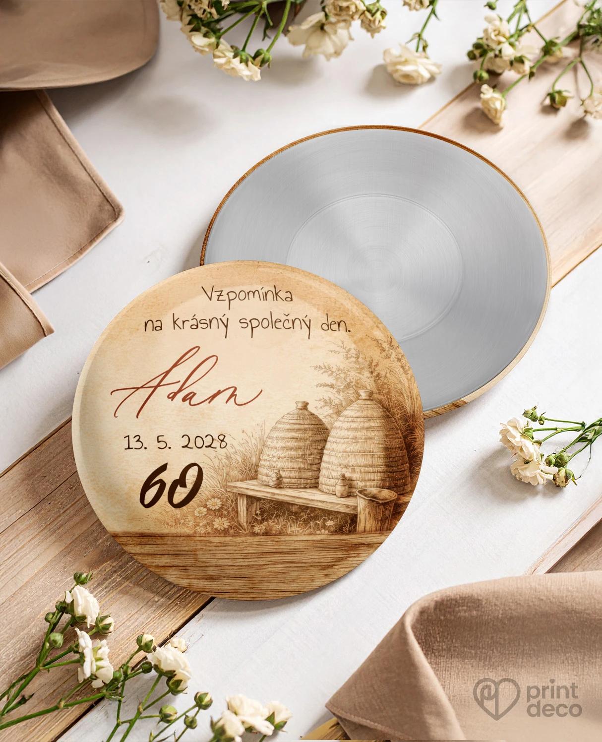Kulatá kovová klíčenka s otvírákem na lahve s rustikálním motivem včelích úlů zasazených do přírodního prostředí působí autenticky, hřejivě a velmi příjemně. Dřevěné prvky a teplé hnědé odstíny evokují klid venkova, tradici a blízkost k přírodě, čímž vytvářejí harmonický design s jemně nostalgickým nádechem. Tento styl se skvěle hodí na jubilejní oslavy v přírodním, folklórním nebo venkovském duchu, kde přirozeně doplní celkovou atmosféru. Praktické provedení spojuje klíčenku s otvírákem, takže jde o dárek, který hosté skutečně využijí i po oslavě. Díky úpravě zdarma přes online editor si snadno přizpůsobíte jméno, datum či další detaily podle vlastních představ. Kvalitní kovové zpracování a precizní tisk zaručují dlouhou životnost i reprezentativní vzhled.