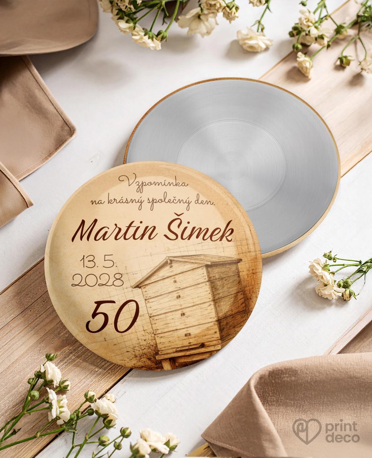 Jemné linie doplněné mřížkovaným pozadím evokují staré výkresy a dodávají designu jedinečný vintage charakter. Teplé hnědé a béžové odstíny vytvářejí vyvážený a přirozený vizuál, který osloví zejména milovníky včelařství, řemesla a přírody. Text se jménem, datem i dalšími detaily je přehledně zakomponován tak, aby nenarušil čistotu kompozice. Tento motiv se skvěle hodí na jubilejní oslavy v přírodním nebo vintage stylu. Zrcátko slouží jako stylová a praktická vzpomínka pro hosty oslavy, kterou mohou využívat i v každodenním životě. Díky kompaktnímu rozměru se pohodlně vejde do kabelky či kapsy. Pomocí úpravy zdarma přes online editor si jednoduše přizpůsobíte text podle vlastních představ. Kvalitní zpracování zajišťuje dlouhou životnost i pěkný výsledek.