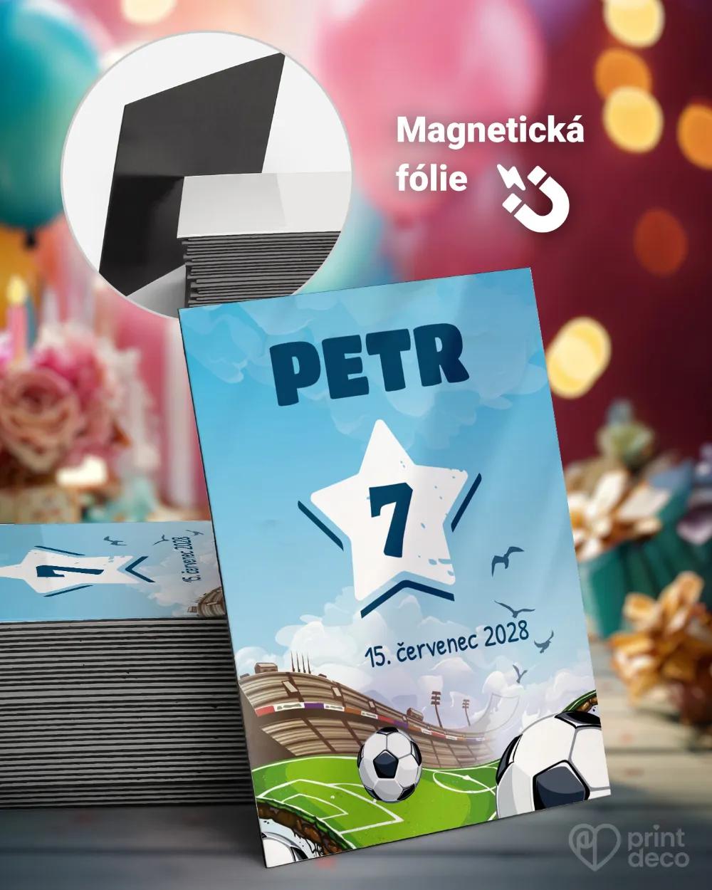 Fotbalová pozvánka na dětskou oslavu pro malého fotbalistu. Stadion, míče a doplňky ve stejném motivu zaručí sportovní párty.