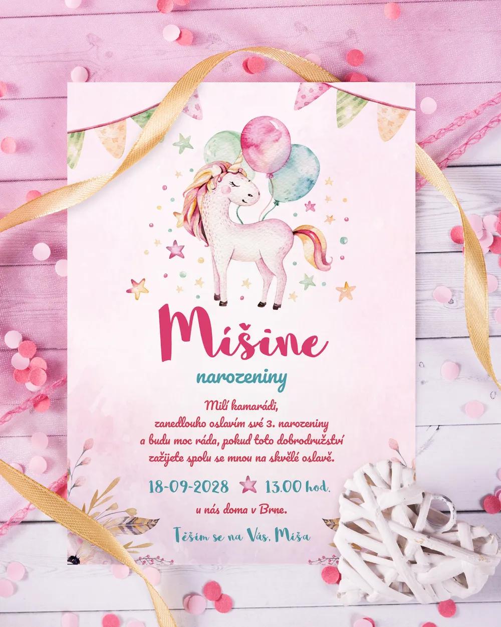 Pozvánka na detskú oslavu - Jednorožec s fotkou