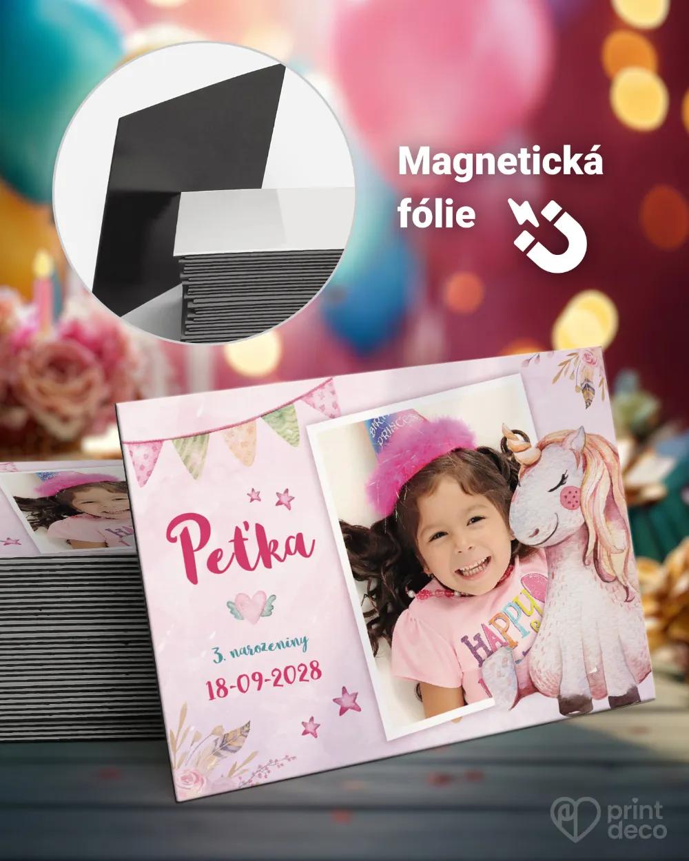 Personalizovaná pozvánka s fotkou a jednorožcom je ideálna pre dievčatá, ktoré túžia po magickej narodeninovej oslave.
