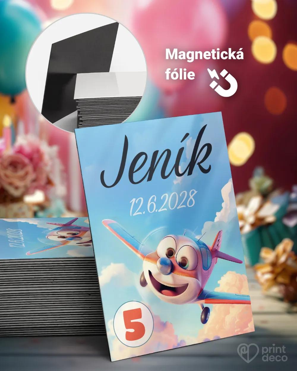 Milovníci letadel, zpozorněte! Pokud vaše dítě slaví narozeniny a je největším fanouškem letadel, tato dětská pozvánka mu splní sen! Kreslené letadélko, obloha v pozadí a oznámení o oslavě vytvářejí perfektní kombinaci pro „nebeskou“ oslavu. U nás si navíc můžete objednat pamětní magnetky nebo jmenovky ve stejném motivu a všechno bude dokonale sladěné.