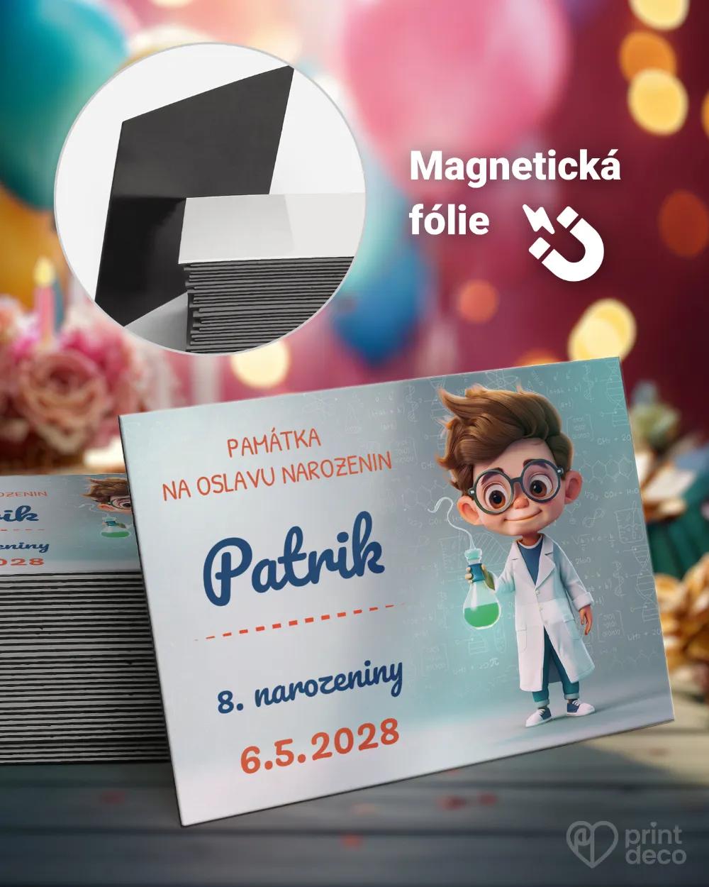 Plánujete oslavu pro chlapce, který je zvídavý, rád objevuje a neustále něco zkoumá? Tato dětská pozvánka s postavičkou vědce v plášti a oznámením o oslavě je pro vás tou správnou volbou. I samotná oslava se může nést v duchu zábavných pokusů a her na bádání. Doplněním o jmenovky nebo pamětní magnetky ve stejném motivu z naší nabídky vytvoříte originální zážitek.
