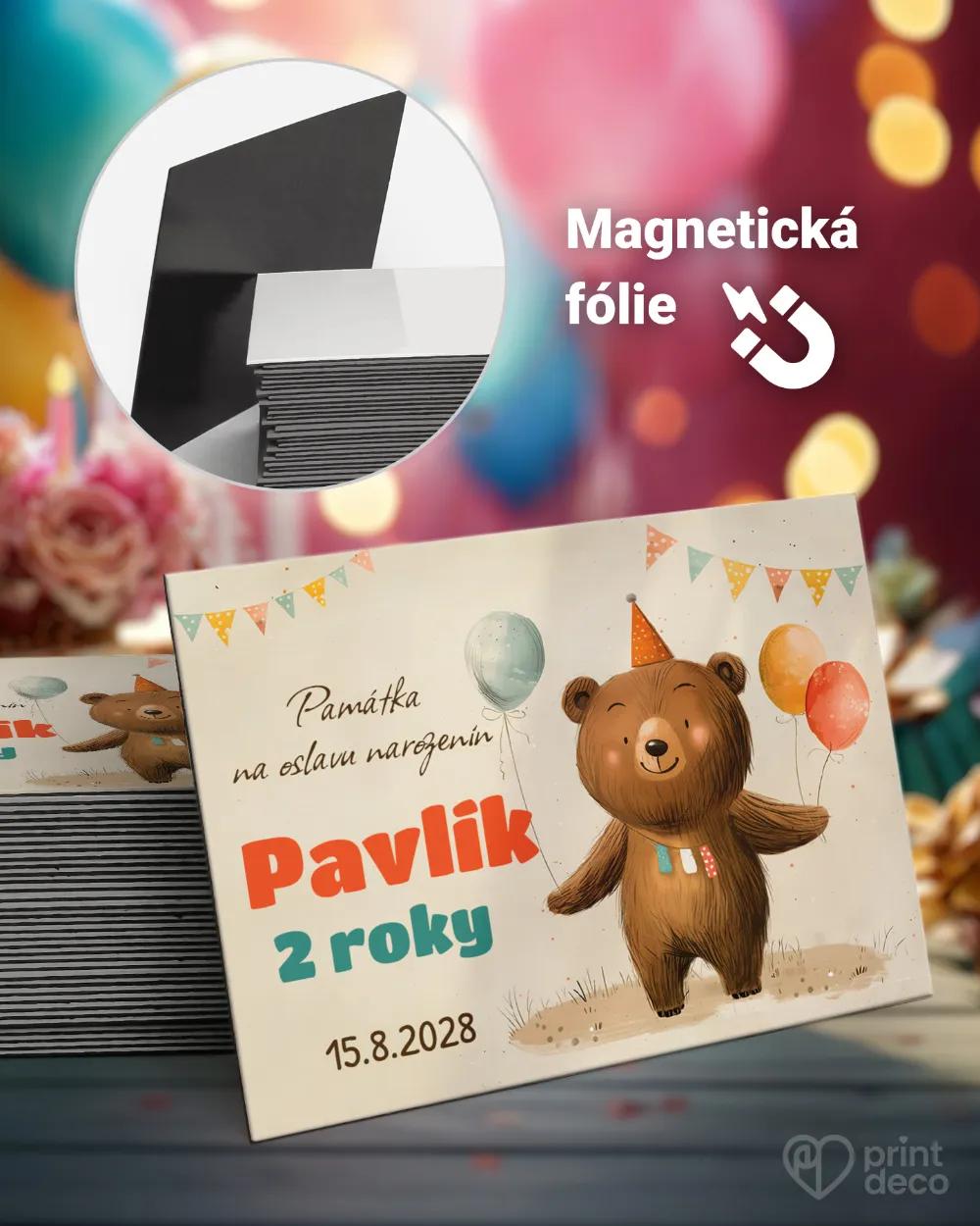 Pozvánka na dětskou oslavu v jemných pastelových barvách s medvídkem držícím balónky. Ne každá pozvánka musí být křiklavá a přezdobená – i decentní, ale roztomilé pozvánky potěší hosty a určitě přijdou oslavit narozeniny vašeho dítěte s radostí. Ve stejném motivu si u nás můžete vybrat také jmenovky nebo pamětní magnetky, aby si hosté odnesli krásnou vzpomínku na tento den.