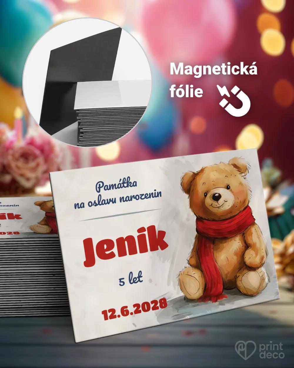 Pokud vaše dítě miluje plyšová zvířátka, zejména medvídky – nebo se vám tento motiv jednoduše líbí – máme pro vás krásnou dětskou pozvánku. Jednoduché pozadí, oznámení o oslavě a rozkošný plyšový medvídek vytvoří milou atmosféru, která připraví hosty na krásnou oslavu. Doplňte ji jmenovkami nebo pamětními magnetkami ve stejném motivu z naší nabídky – a medvídková párty může začít!