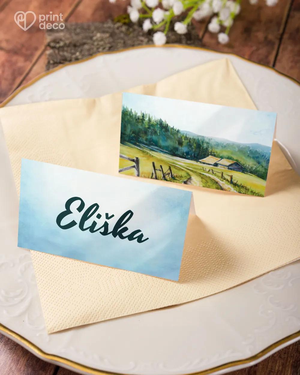 Bydlíte v malebné a kouzelné vesničce obklopené přírodou, nebo je to jen váš sen, který chcete promítnout i do své pozvánky na oslavu? Máme jednu přímo pro vás. Pozvánku tvoří malovaná příroda, stromy, cestička a dřevěný domeček – jako soulad klidu a pohody. Doplňte pozvánku i jmenovkami nebo etiketami na lahve ve stejném motivu z naší nabídky a vytvořte tak jednotný a harmonický celek.