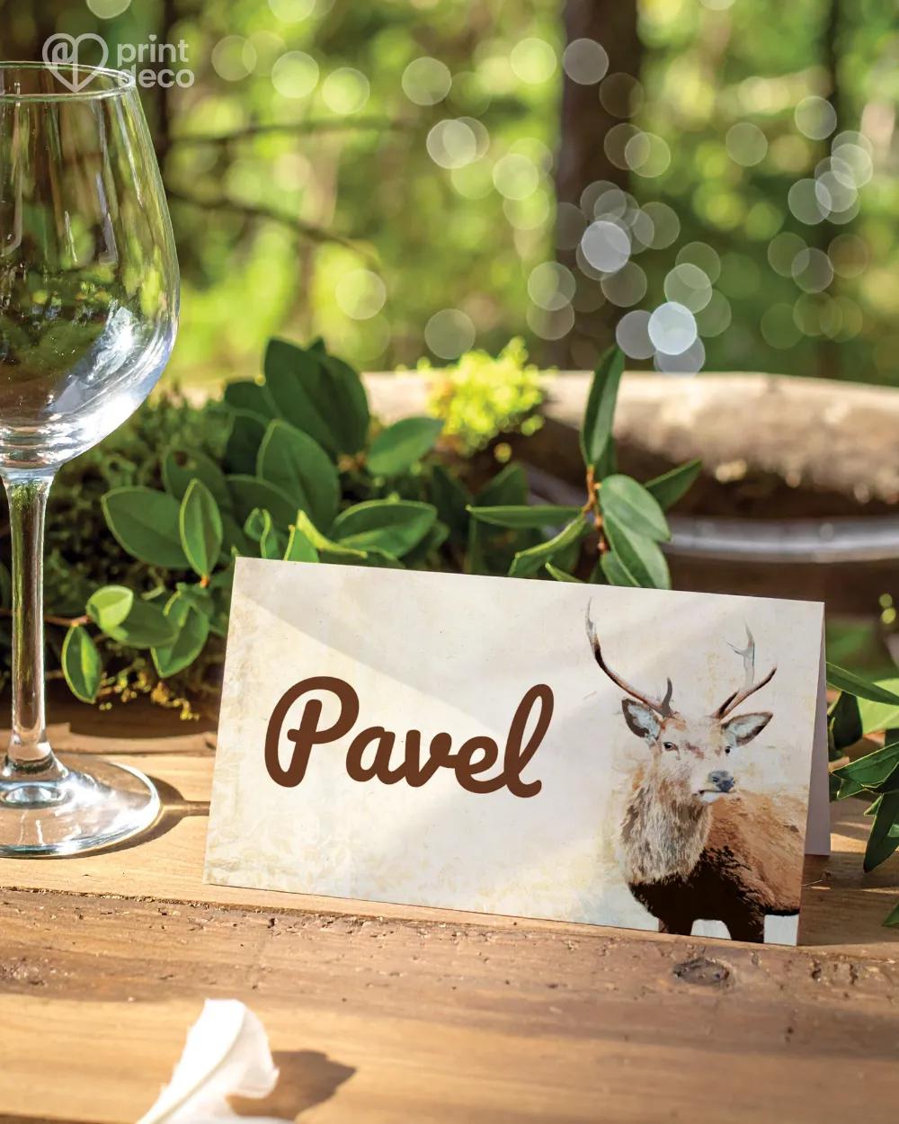 Pozváni na narozeniny od myslivce s jelenem potěší každého milovníka přírody. Stylově se hodí k oslavě s etiketami a jmenovkami v setu.