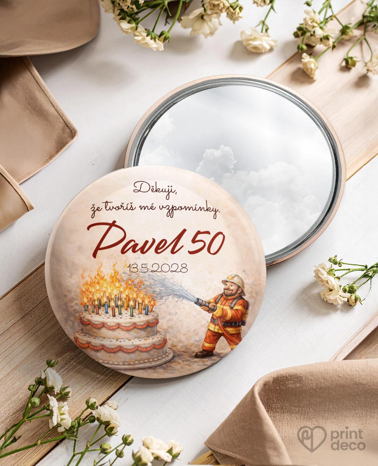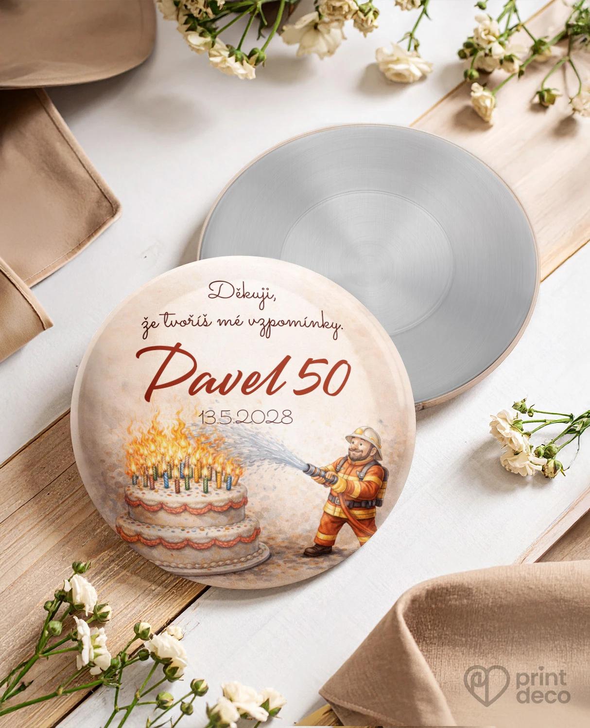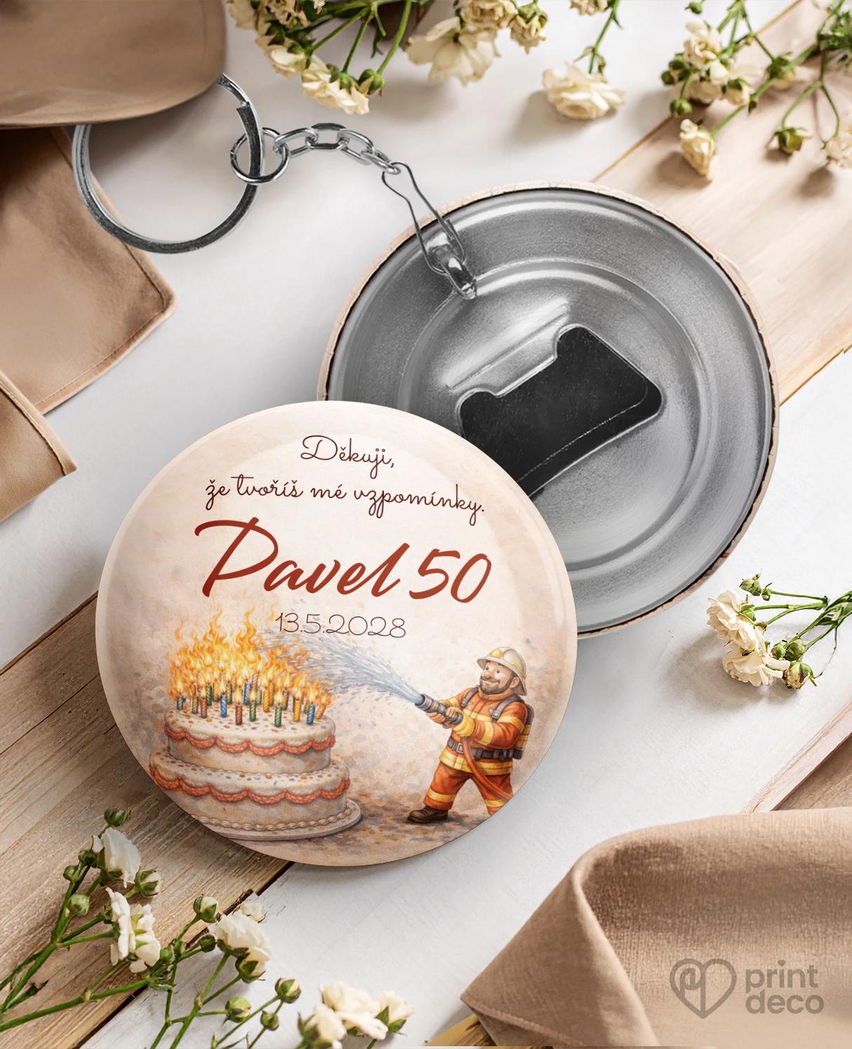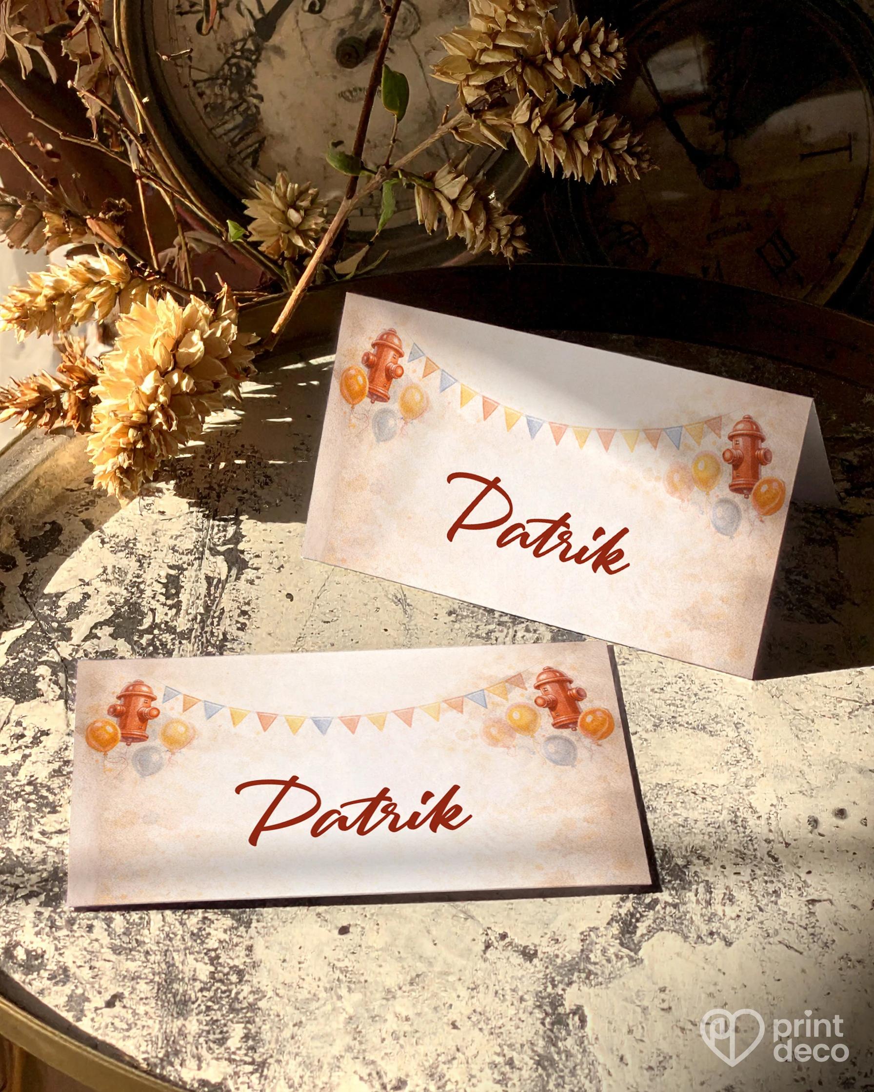 Narozeninová pozvánka pro hasiče s veselým motivem oslavy, ideální jako originální pozvánka na oslavu nebo jubileum.