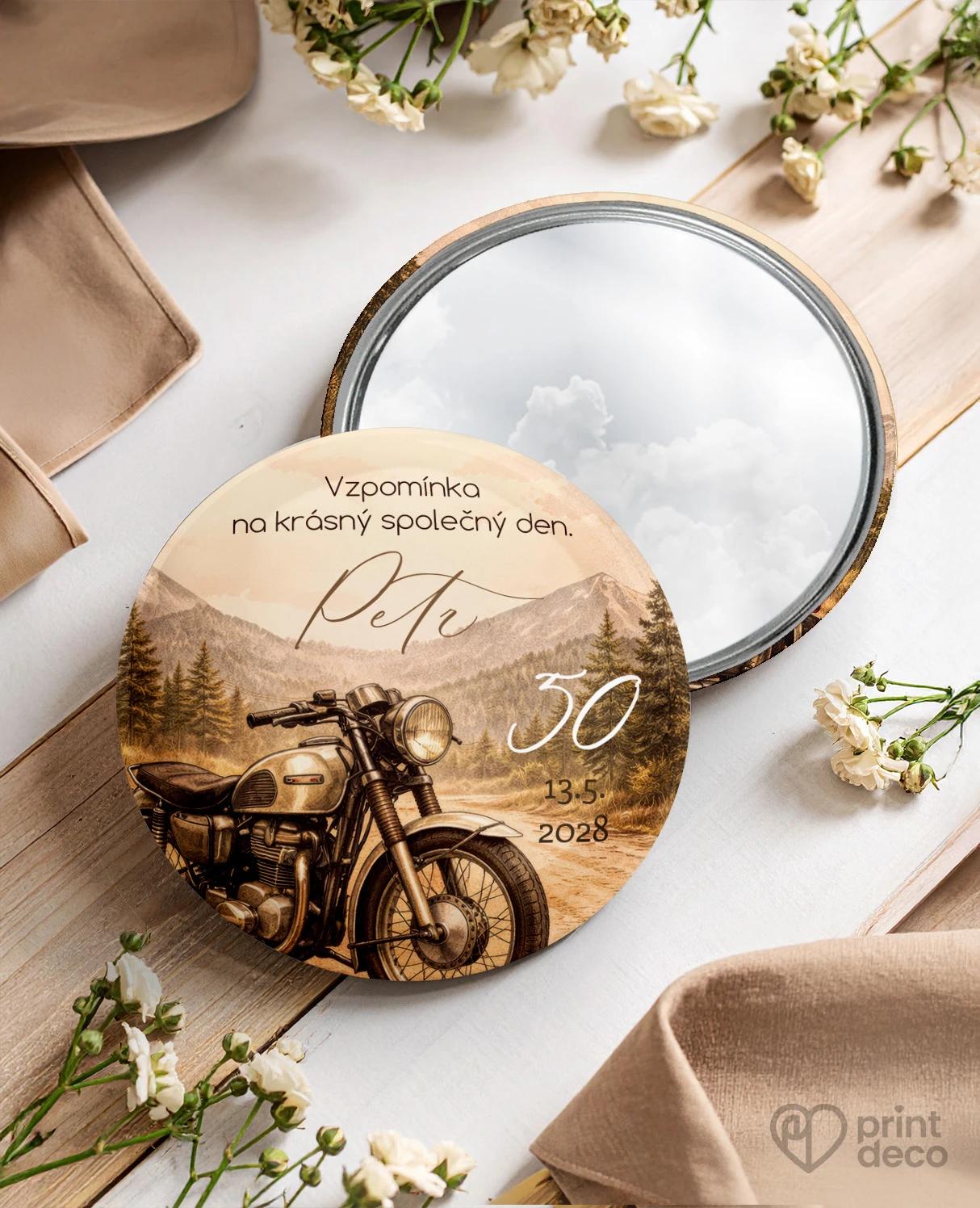 Narozeninová pozvánka pro motorkáře s horským motivem a retro motorkou, originální pozvánka na jubileum s úpravou zdarma přes online editor.