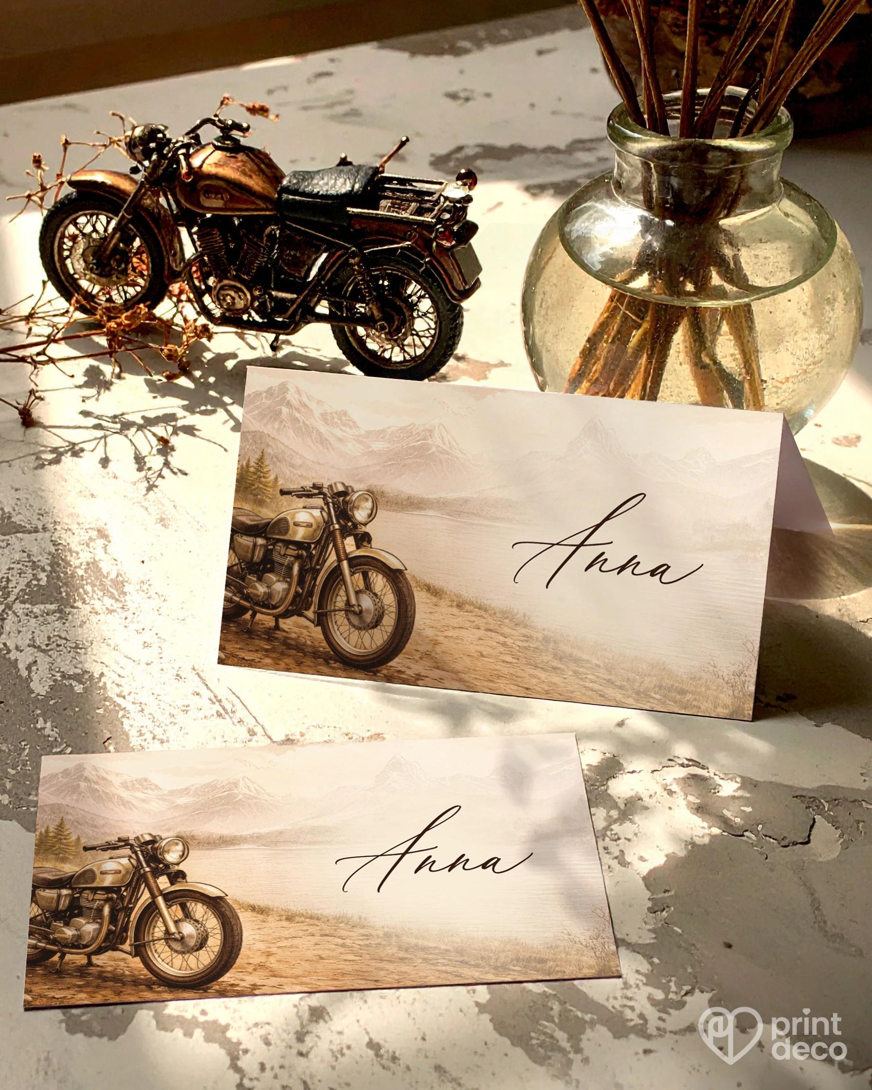 Narozeninová pozvánka pro motorkáře s horským motivem a retro motorkou je ideální volbou pro milovníky jízd, svobody a dlouhých cest. Ilustrace motocyklu v přírodním prostředí vytváří klidnou, dobrodružnou atmosféru a dělá z pozvánky originální způsob, jak pozvat rodinu a přátele na oslavu jubilea či narozenin motorkáře. Design působí stylově a nadčasově, takže se hodí pro neformální setkání i větší oslavy. Text si snadno přizpůsobíte podle vlastních představ — doplníte jméno oslavence, datum, místo konání i vlastní pozvání. Díky úpravě zdarma přes online editor, kvalitnímu tisku a rychlé výrobě získáte originální pozvánky pro motorkáře připravené na oslavu bez zbytečného čekání.