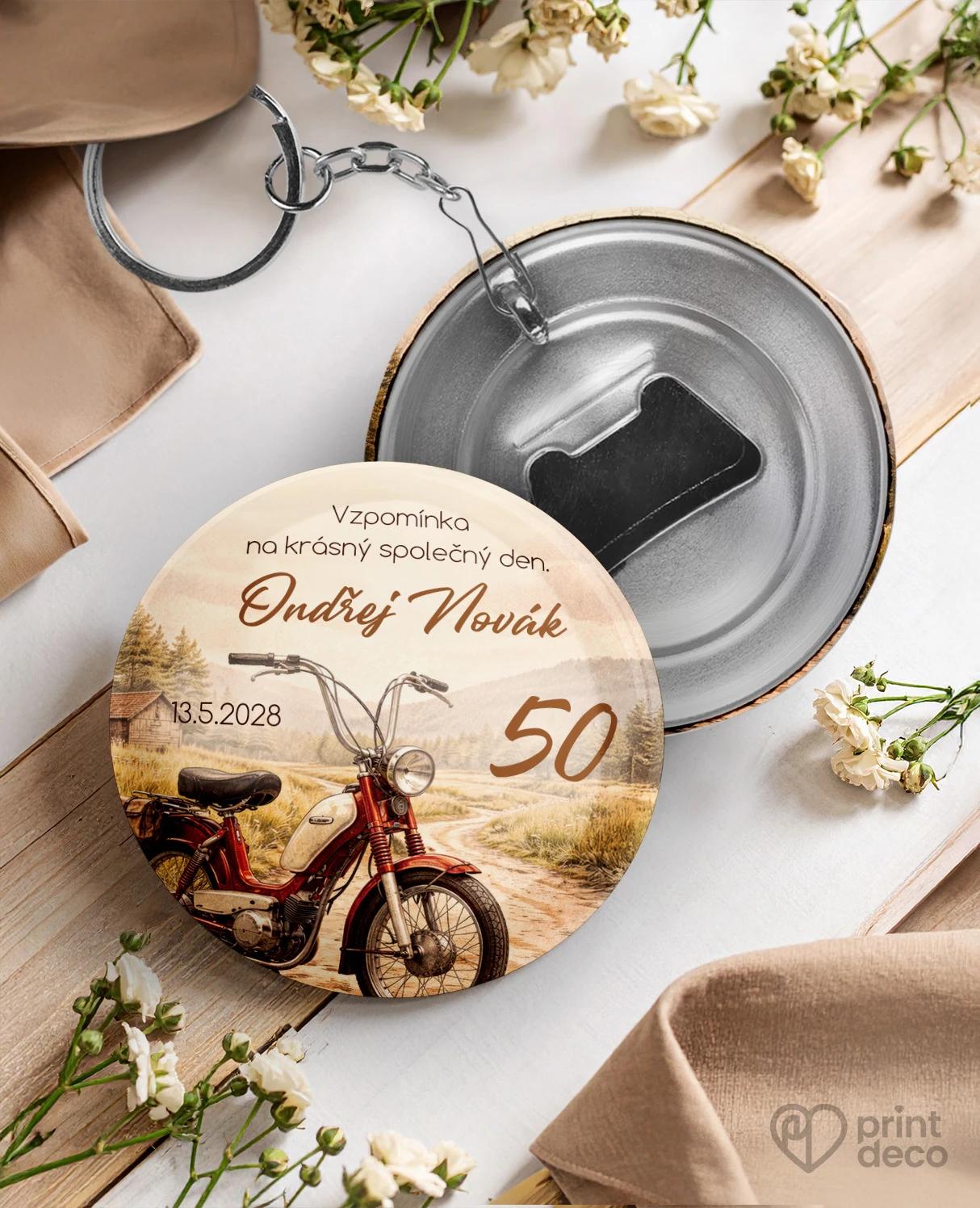 Narozeninová pozvánka pro motorkáře s retro motorkou a přírodním motivem, originální pozvánka na jubileum s úpravou zdarma přes online editor.