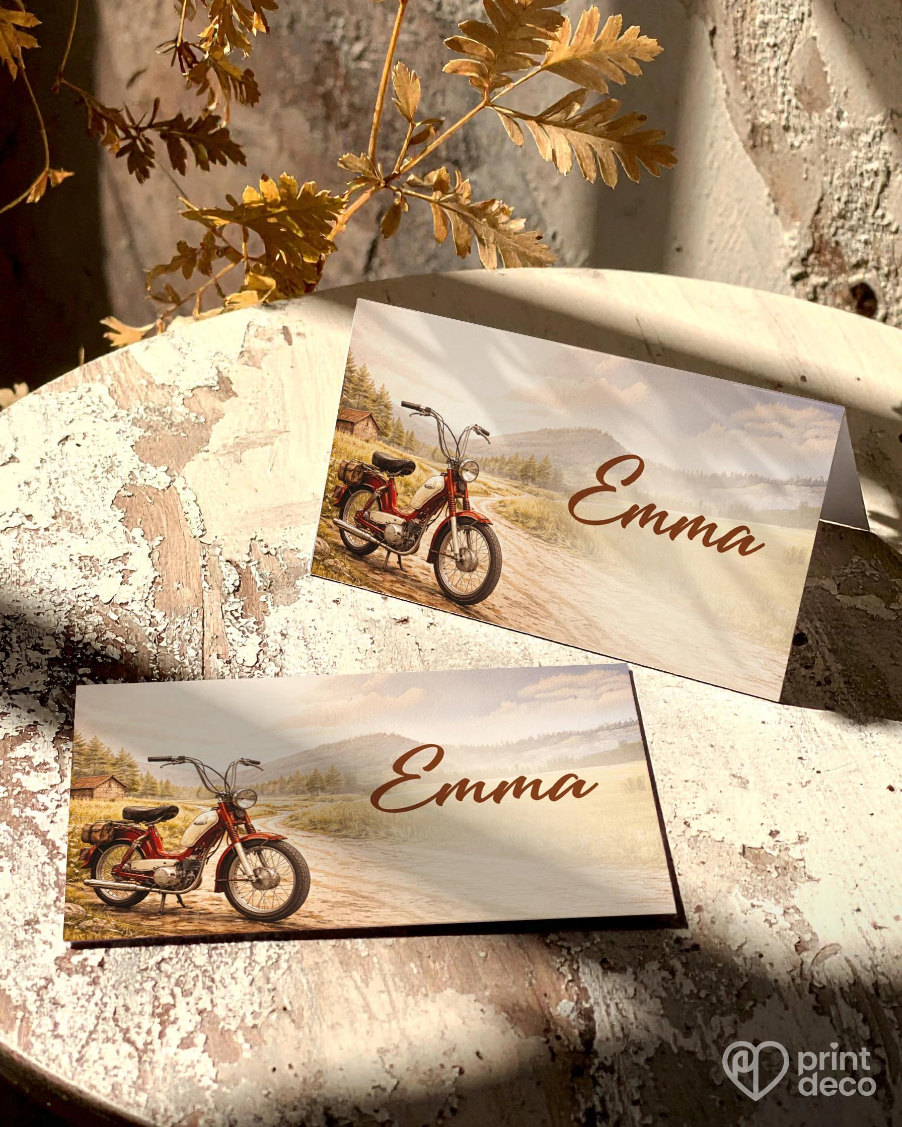 Narozeninová pozvánka pro motorkáře s retro motorkou a přírodním horským motivem je ideální volbou pro milovníky jízd, svobody a cestování. Ilustrace motocyklu v klidné krajině vytváří příjemnou atmosféru a dělá z pozvánky originální způsob, jak pozvat rodinu a přátele na oslavu jubilea nebo narozenin motorkáře. Design působí stylově a nadčasově, díky čemuž se hodí pro neformální setkání i větší oslavy. Text si snadno přizpůsobíte podle vlastních představ — doplníte jméno oslavence, datum, místo konání i vlastní pozvání. Díky úpravě zdarma přes online editor, kvalitnímu tisku a rychlé výrobě získáte originální pozvánky pro motorkáře připravené na oslavu bez zbytečného čekání.