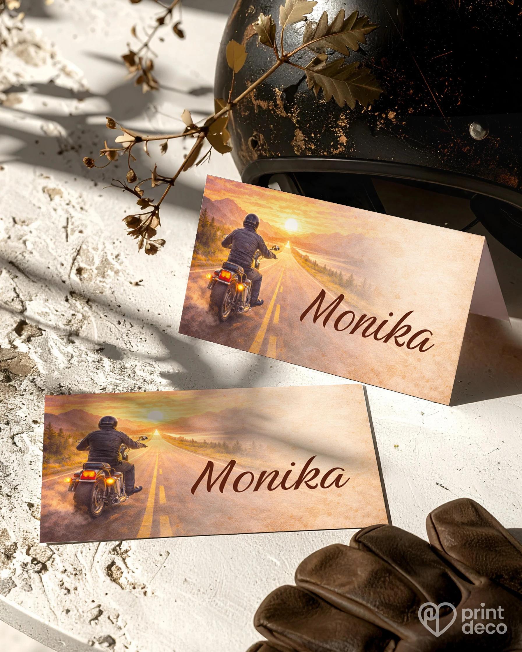 Narozeninová pozvánka pro motorkáře s atmosférickým motivem jízdy směrem do zapadajícího slunce vytváří silný vizuální příběh o svobodě, cestování a nových kilometrech, které teprve čekají. Design je vhodný pro oslavence, kteří mají blízko k motorkám, cestám a dobrodružství a chtějí své jubileum oslavit v uvolněné a přátelské atmosféře. Teplé barevné ladění a scenérie otevřené cesty dodávají pozvánce klidný, ale zároveň dynamický charakter, který přirozeně vystihuje životní styl motorkářů. Text si snadno přizpůsobíte podle vlastních představ, doplníte jméno oslavence, datum i místo konání a vytvoříte osobní pozvání na oslavu narozenin nebo jubilea. Díky úpravě zdarma přes online editor, kvalitnímu tisku a rychlé výrobě získáte originální pozvánku připravenou k odeslání bez zbytečného čekání.