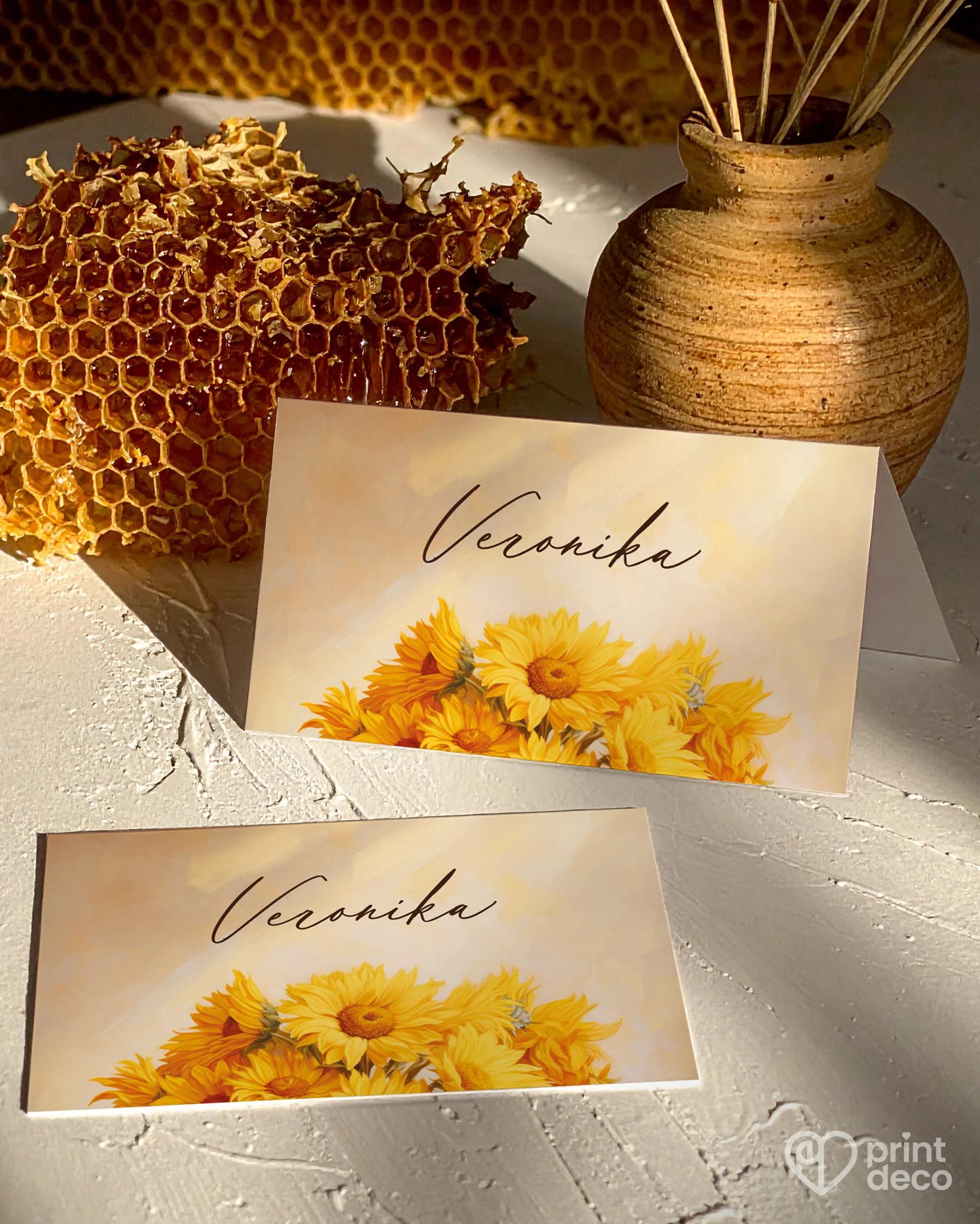 Narozeninová pozvánka s motivem slunečnic a medu, vhodná pro včelaře i milovníky přírody, s jednoduchou personalizací přes online editor.