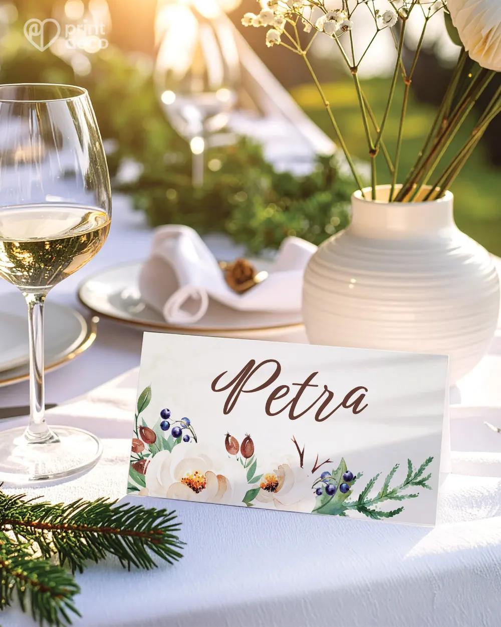 Pozvánka na narozeninovou oslavu jako stvořená pro milovníky lesů nebo podzimního období. Pozvánku tvoří fotografie oslavence a je dozdobená květinami, listy a plody šípků a dalších rostlin. Tyto rostliny můžete využít i k výzdobě místa oslavy a ve stejném motivu vám rádi připravíme etikety na láhve nebo jmenovky, aby vše ladilo do jednoho stylu.