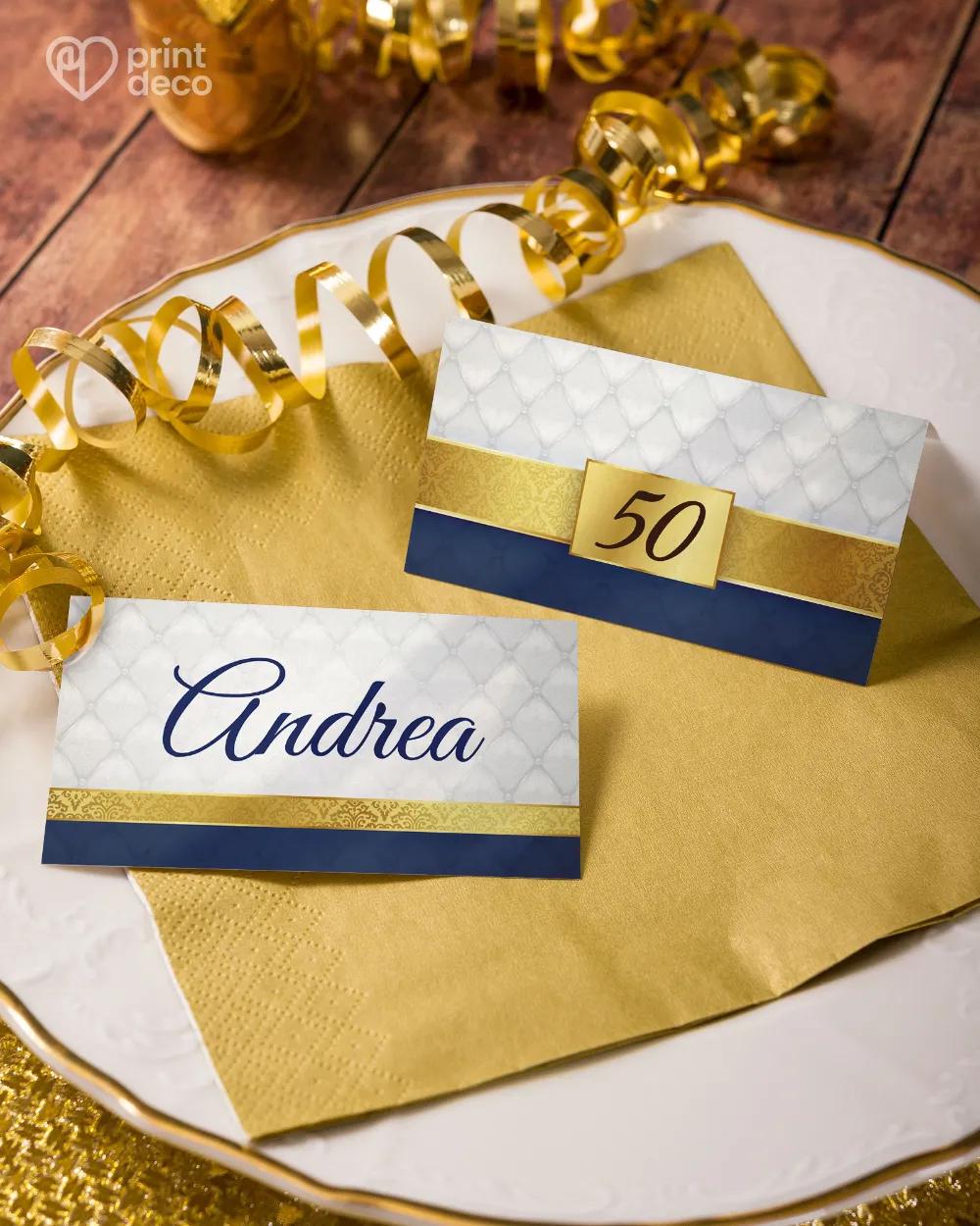 Představujete si pro svou oslavu luxusní pozvánku v honosném stylu? Máme jednu přímo pro vás! Pozvánku tvoří bílé pozadí s detailem prošití, zlatá stuha a zlato-modré prvky. Využijte pro svou oslavu stejné barevné motivy, doplňte je také dalšími tiskovinami ve stejném designu z naší nabídky – a vaše královská oslava může začít.