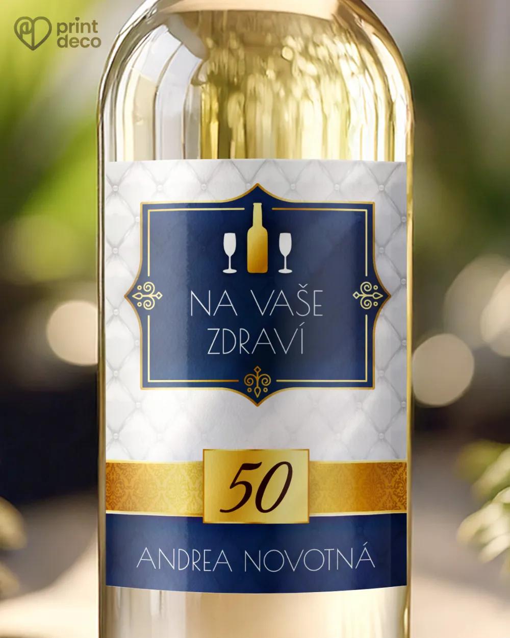 Luxusní pozvánka se zlatou stuhou a modrými detaily se hodí na slavnostní jubileum v královských barvách a elegantním stylu.
