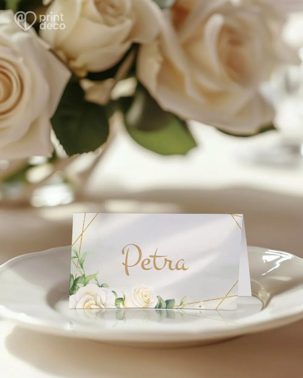 Krása bílých růží doplněná zelenými lístky a zajímavým bílo-zeleným pozadím je skvělou volbou pro pozvánku na oslavu, pokud milujete růže a tyto květy budou zdobit i místo vaší hostiny. U nás si ve stejném motivu můžete vybrat také další tiskoviny, například jmenovky či etikety na láhve, a vše tak bude sladěné v jednom tónu.