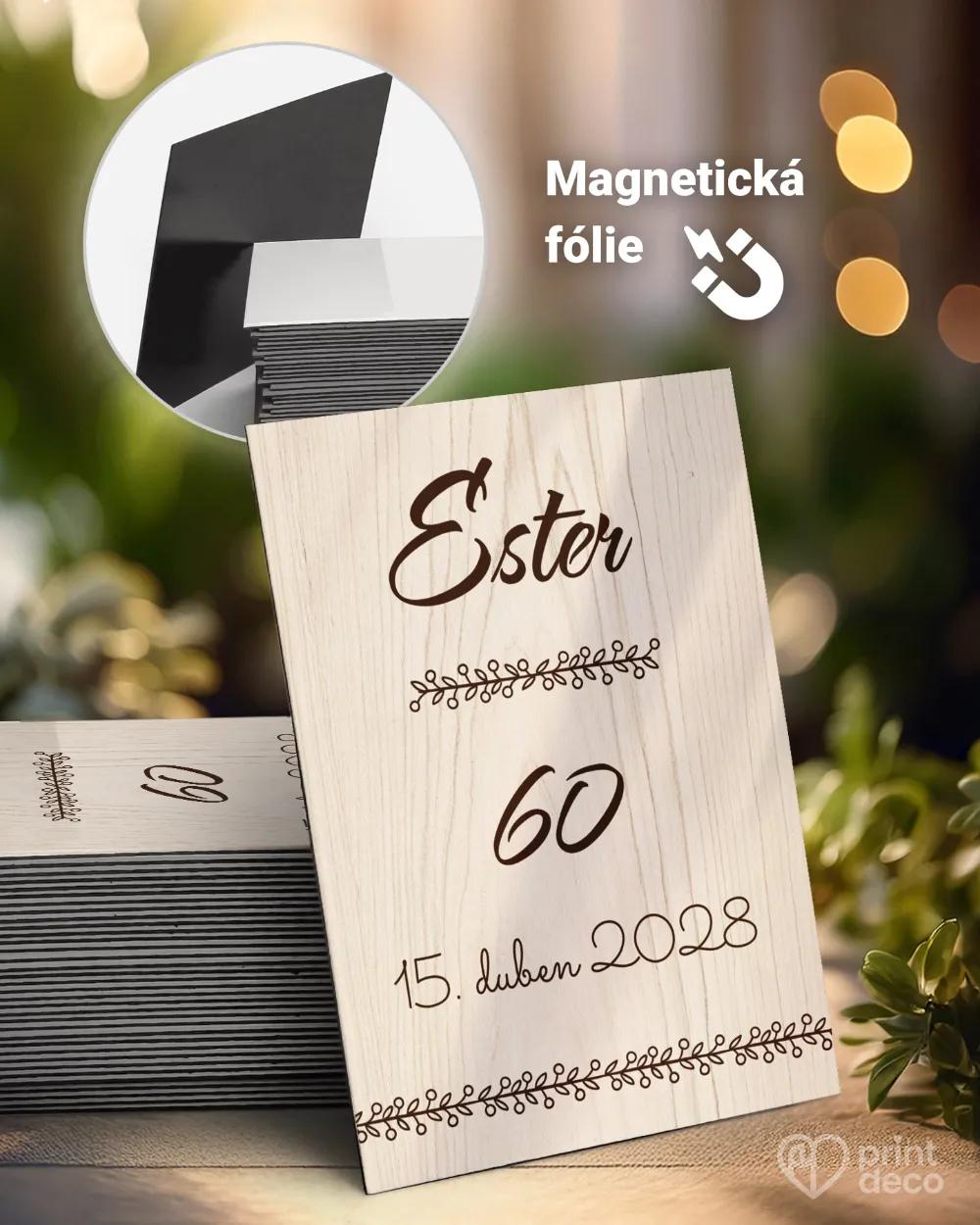 Jednoduchá a vkusná pozvánka s motivem dřeva ponechává prostor pro hlavní prvek pozvánky – samotné pozvání na oslavu narozenin. Výzdobu místa oslavy můžete doplnit o dřevěné dekorace a ve stejném motivu si u nás můžete vybrat také jmenovky nebo etikety na lahve, aby bylo vše dokonale sladěné.