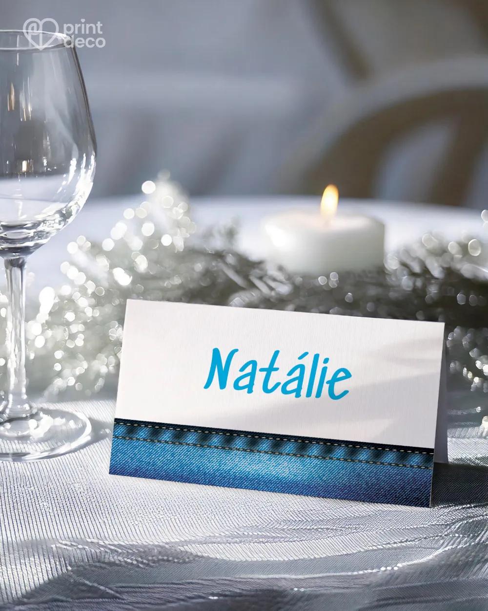 Vtipná pozvánka s riflovým vzorem a veselými pejsky je ideální na nezapomenutelnou párty s přáteli v originálním duchu.