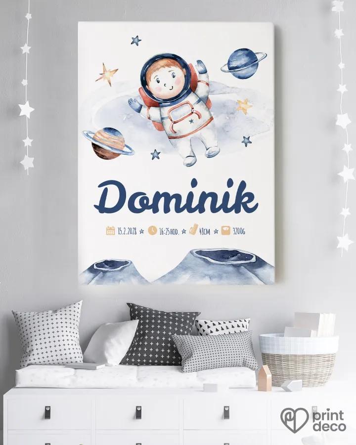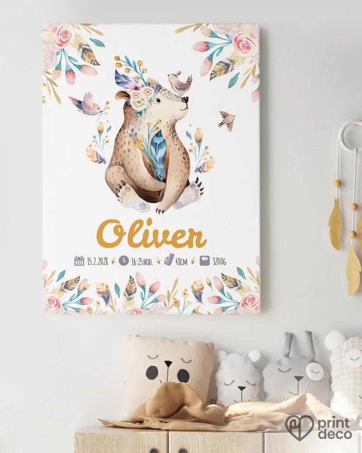 Dětský plakát přináší něžný motiv spícího miminka, které je obklopené akvarelovými květy v jemných růžových a fialových tónech. Ilustrace působí laskavě a romanticky, takže se plakát stane ideální dekorací dětského pokoje i originální vzpomínkou na narození miminka. Plakát lze personalizovat doplněním jména, data, času, váhy a délky, čímž vznikne jedinečný a osobní kousek. Na výběr máte kvalitní tisk na fotopapíře nebo elegantní plátno napnuté na skrytém dřevěném rámu. Skvělý tip na dárek pro rodiče a krásná dekorace, která uchová vzpomínky na první chvíle děťátka.