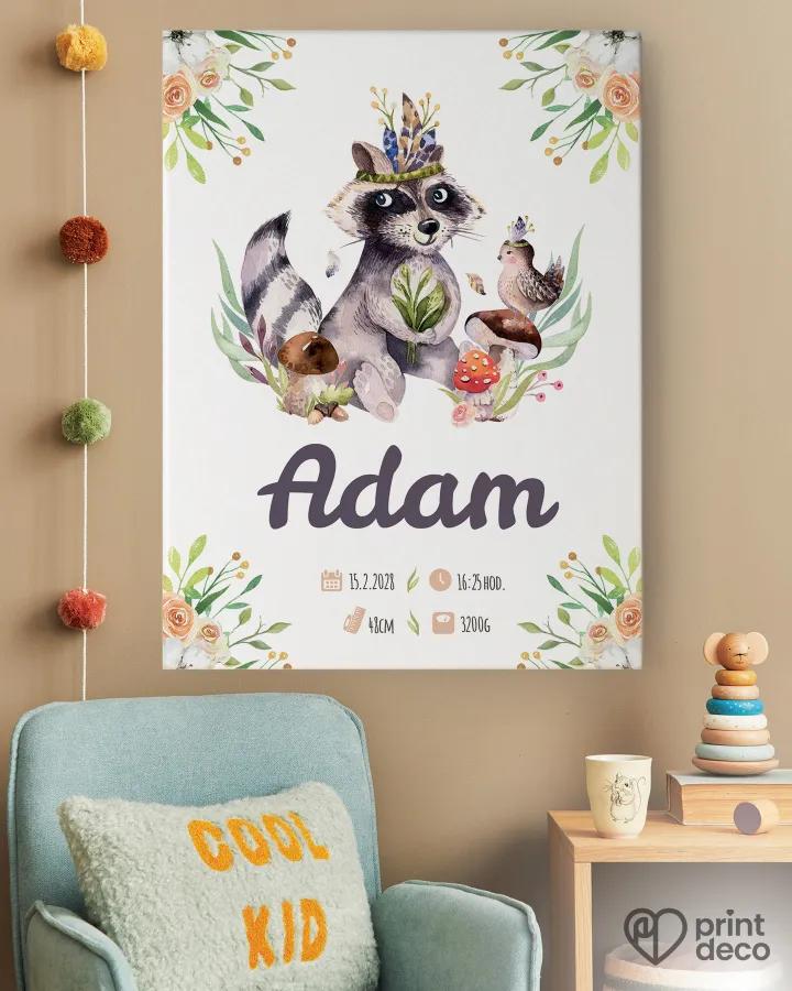 Dětský plakát přináší něžný motiv sovičky s velkýma očima, ozdobené květinovou čelenkou s pírkem, kterou obklopují jemné akvarelové listy a květy. Ilustrace působí hravě a pohádkově, díky čemuž se plakát stane krásnou dekorací dětského pokoje i originální památkou na narození miminka. Plakát lze personalizovat přidáním jména, data, času, váhy a délky dítěte, čímž vznikne jedinečný kousek s osobním významem. Vybrat si můžete kvalitní tisk na fotopapíře nebo elegantní plátno napnuté na skrytém dřevěném rámu. Skvělý dárek pro rodiče a stylový doplněk, který uchová vzácné vzpomínky na první chvíle děťátka.
