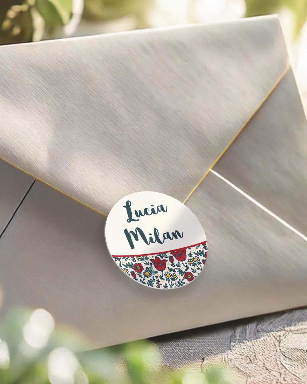 Svatební kulaté nálepky s elegantním tyrkysovým abstraktním designem doplněným jemnými zlatými prvky dodají svěží moderní styl vašim výslužkám, dárkům či svatebním lahvím. Personalizujte si jména a datum přímo v online editoru zdarma a slaďte je s dalšími svatebními tiskovinami jako etikety na lahve, jmenovky na stůl, svatební menu či magnetky. Nálepky vyrábíme expresně, ve vysoké kvalitě tisku a v různých velikostech podle vašeho výběru. Moderní design a precizní zpracování potěší každého hosta a doladí výzdobu vaší svatby.