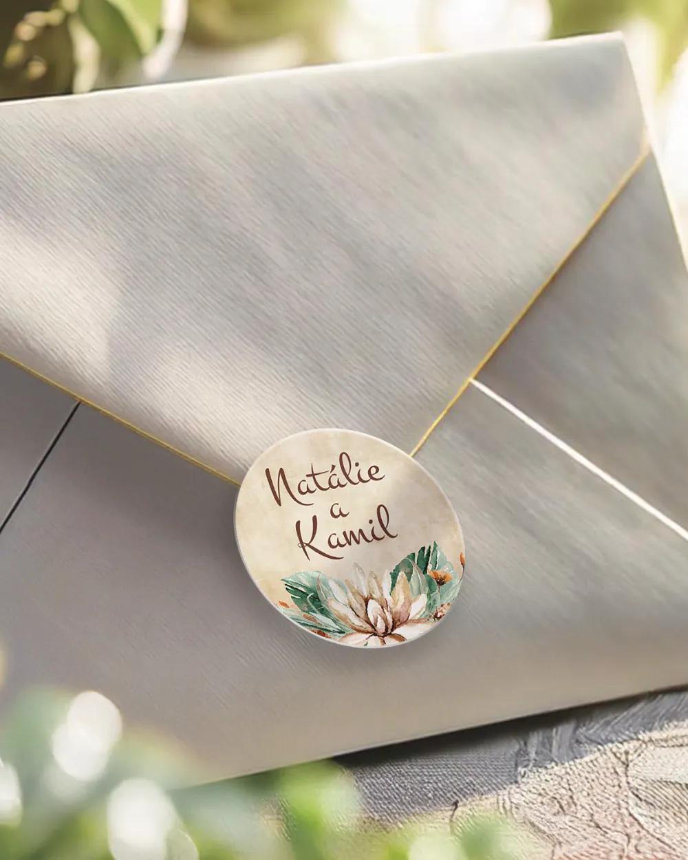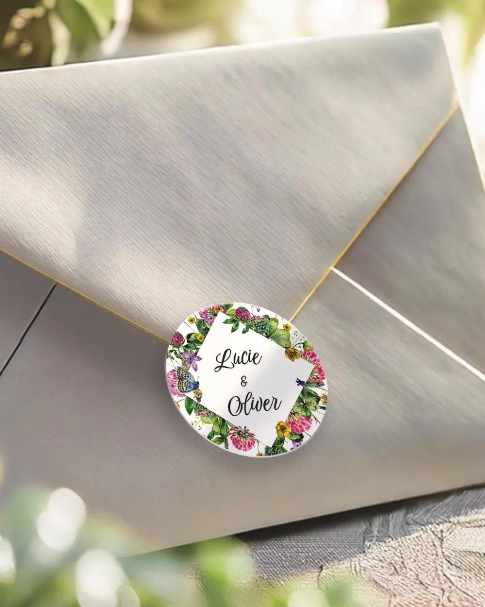 Jemné svatební kulaté nálepky s romantickým motivem sedmikrásek dodají vašim výslužkám a dárkům něžný a svěží vzhled. Přírodní design krásně ladí s rustikálními i vintage svatbami. Jména a datum si jednoduše upravíte zdarma v online editoru podle vlastních představ. Motiv snadno sladíte i s dalšími tiskovinami ve stejném stylu — jmenovkami na stůl, etiketami na lahve, svatebním menu nebo magnetkami. Špičkový tisk a expresní výroba vám zajistí dokonalý výsledek bez čekání. Proměňte malé detaily v nezapomenutelný dojem.
