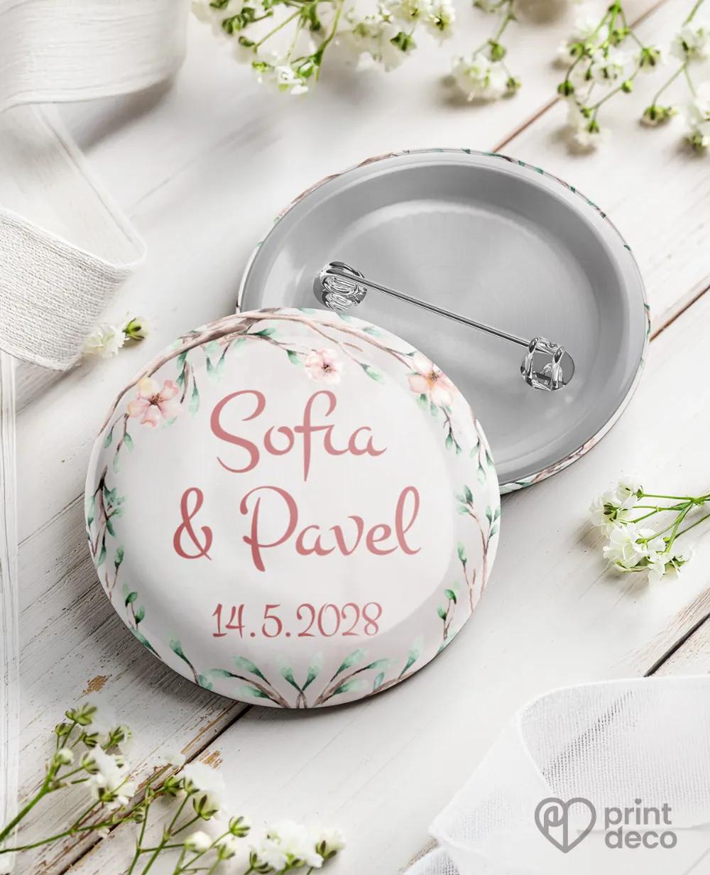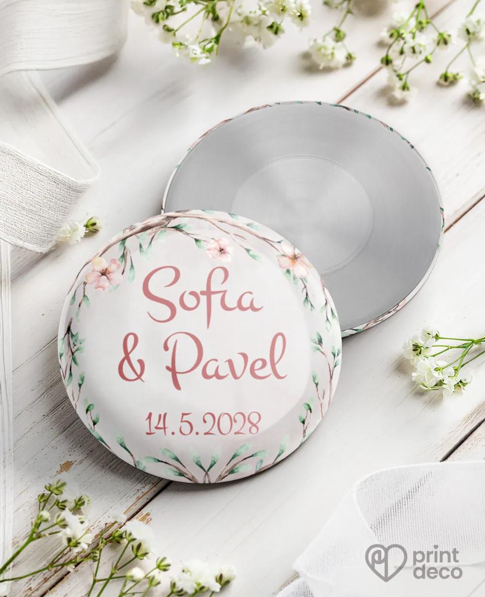 Svatební mini nálepky na obálky a dárky s něžným motivem růžových kvítků na větvičkách dodají vašim tiskovinám romantický a jemný vzhled. Akvarelové větvičky se svěžími zelenými listy a jemně růžovými květy na světlém pozadí působí harmonicky a elegantně, ideální pro svatby s vintage, přírodním či romantickým stylem. Personalizaci jmen a data si upravíte zdarma přímo v online editoru podle svých potřeb. Nálepky jsou kulaté, dostupné v různých velikostech, skvěle se hodí na obálky oznámení, dárkové krabičky, výslužky i drobné pozornosti pro hosty. Kvalitní tisk, expresní výroba a možnost sladit je s vložkami do obálek, etiketami, magnetkami, jmenovkami a svatebním menu vám umožní vytvořit krásně sladěnou kolekci.