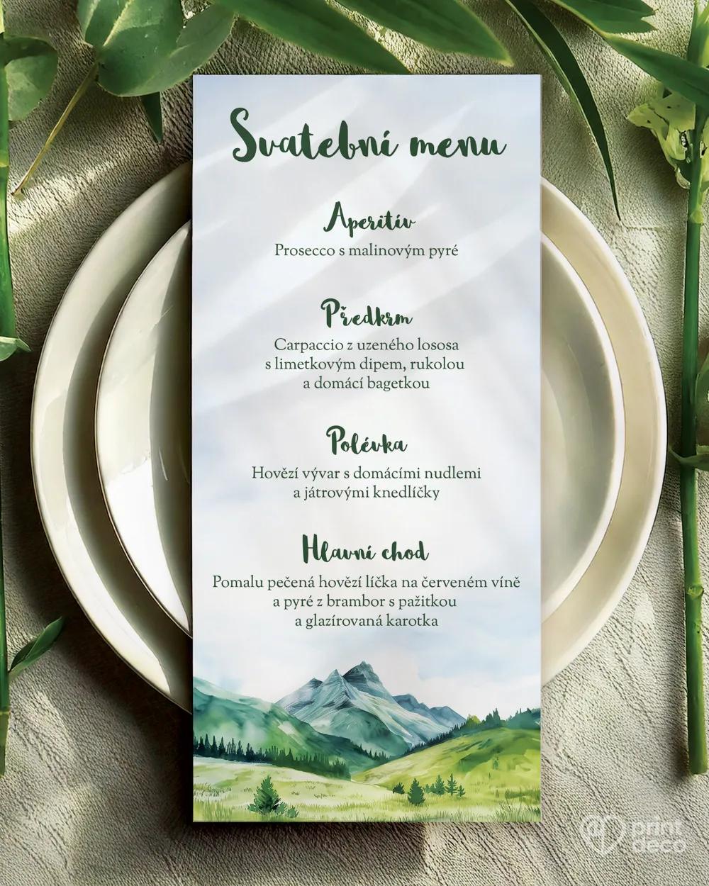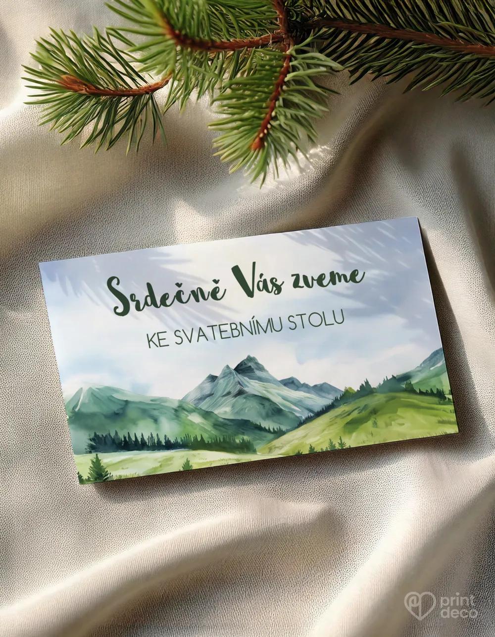 Elegantní svatební samolepky na výslužky a krabičky se jmény a datem svatby, laděné do jemné modrozelené palety s akvarelovým horským motivem. Ilustrace vysokých štítů, lesů a kopců dodá vašim výslužkám originální a stylový vzhled s nádechem přírody. Personalizované samolepky si jednoduše upravíte zdarma přes online editor podle svých představ – doplníte jména, datum nebo poděkování. Vybrat si můžete kulatý nebo obdélníkový tvar a sladit je i s dalšími svatebními tiskovinami ze stejné kolekce – etikety na lahve, magnetky, jmenovky, menu a další. Svatební samolepky jako krásný detail vaší svatby.