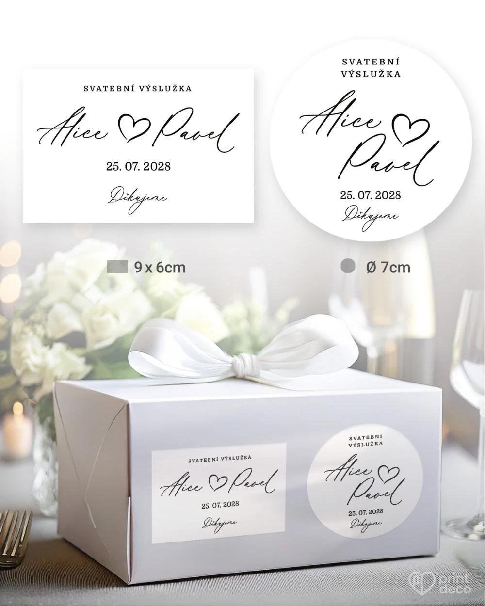 Svatební samolepky na výslužky jsou stylovým detailem, který dodá vašim krabičkám a dárkům pro hosty jemný a osobitý vzhled. Design s kaligrafickým písmem doplněný jednoduchým motivem srdíčka a lehce rustikálním stylem působí přirozeně a nadčasově, díky čemuž se hodí zejména pro svatby ve vintage nebo přírodním duchu. Jména a datum si snadno přizpůsobíte podle vlastních představ přes online editor zdarma. Samolepky využijete na výslužky, krabičky i malé dárky, kde vytvoří harmonický vizuální celek. Na výběr jsou kruhové i obdélníkové varianty, které se přizpůsobí různým typům balení. Díky kvalitnímu tisku, snadné aplikaci a expresní výrobě je snadno sladíte i s dalšími tiskovinami, jako jsou etikety na lahve, magnetky, jmenovky či svatební menu.