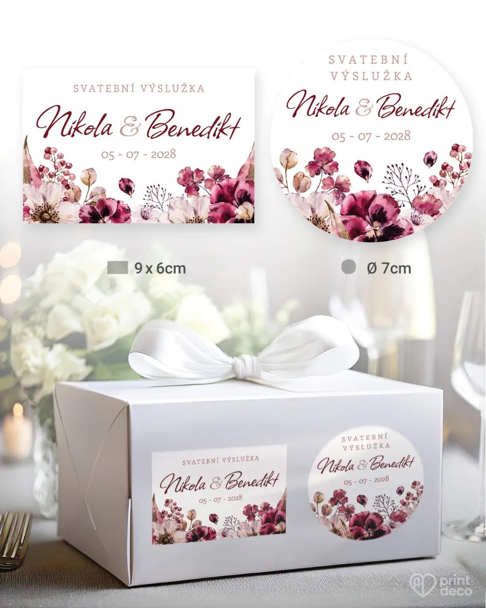 Svatební samolepky na výslužky pivoňky s šeříkem