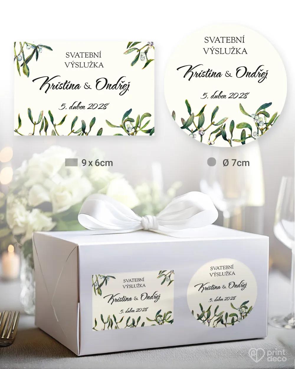 Svatební samolepky na výslužky s růžemi a zlatými detaily. Úprava zdarma online, expresní tisk, sladěné s menovkami, etiketami, menu i magnetkami.