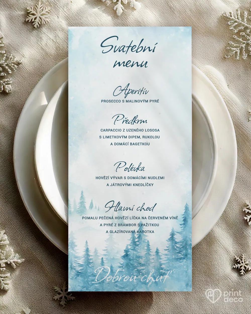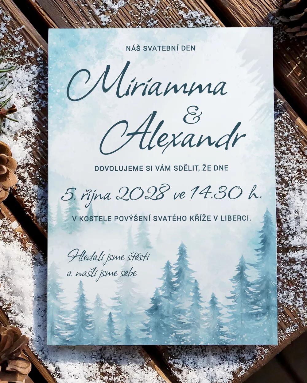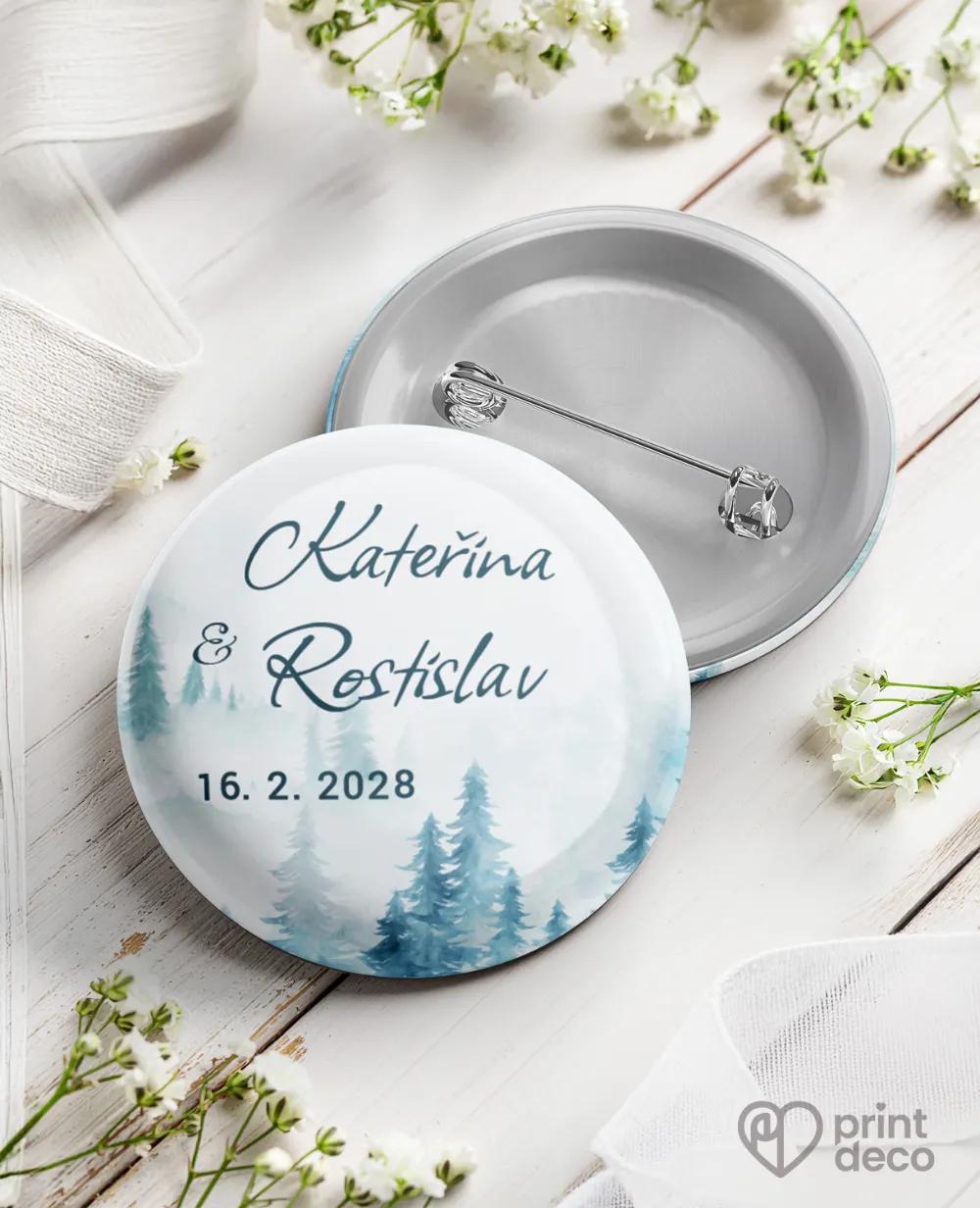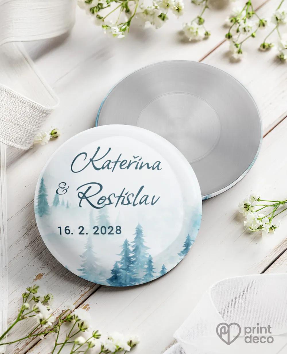 Originální svatební samolepky na výslužky s jemným zimním motivem borovicového lesa v modrých tónech dodají vašim svatebním dárkům kouzelný, mrazivý vzhled. Personalizované jmény a datem svatby si je snadno upravíte zdarma přes online editor podle svých představ. Samolepky jsou dostupné v kulatém i obdélníkovém tvaru a krásně ozdobí svatební výslužky, krabičky či malé dárky pro hosty. Tento elegantní zimní design snadno sladíte s dalšími svatebními tiskovinami ve stejném stylu – etikety na lahve, magnetky, jmenovky, svatební menu a další doplňky. Samozřejmostí je vysoká kvalita a expresní výroba.