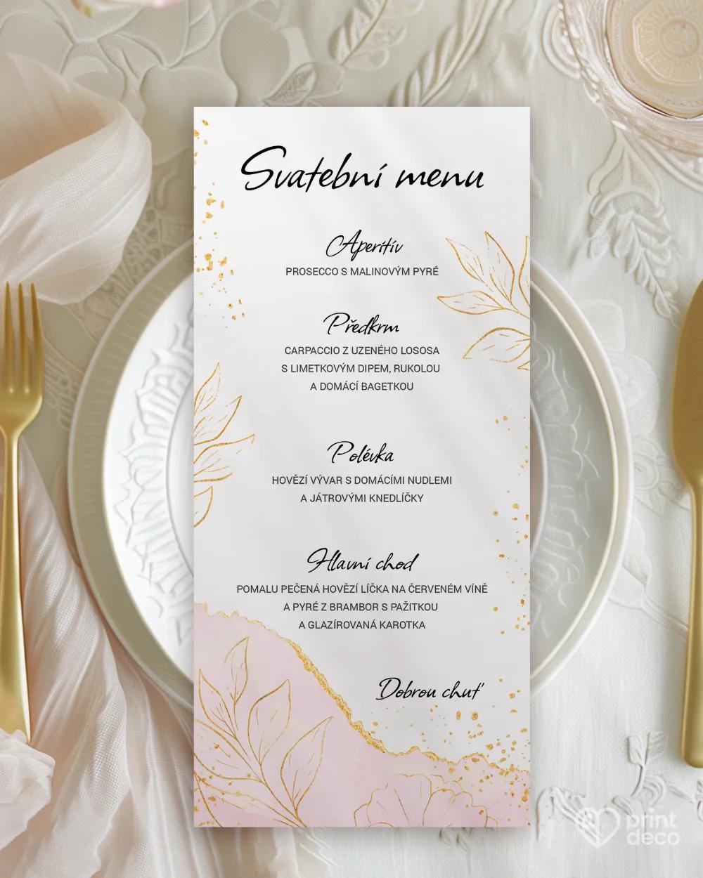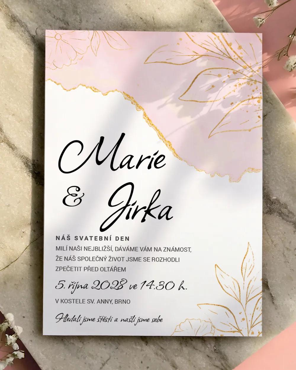 Svatební číslování stolů je nepostradatelným detailem, který usnadní hostům orientaci a zároveň ozdobí vaši svatební výzdobu. Můžete si vybrat jednostrannou verzi do rámečku nebo praktickou oboustrannou přehnutou do stříšky, která stojí samostatně. Elegantní design spojuje abstraktní mramorové pozadí v jemných růžových tónech se zlatými květinovými liniemi a decentními tečkami, které dodávají luxusní nádech. Tento motiv krásně doplní moderní, glamour i romantické svatby. Číslování stolů vám zjednoduší organizaci hostů a zároveň doladí výzdobu k dokonalosti. Kvalitní tisk, expresní výroba a možnost kombinace s dalšími svatebními tiskovinami jako jmenovky, etikety, magnetky či menu zajistí perfektní výsledek.