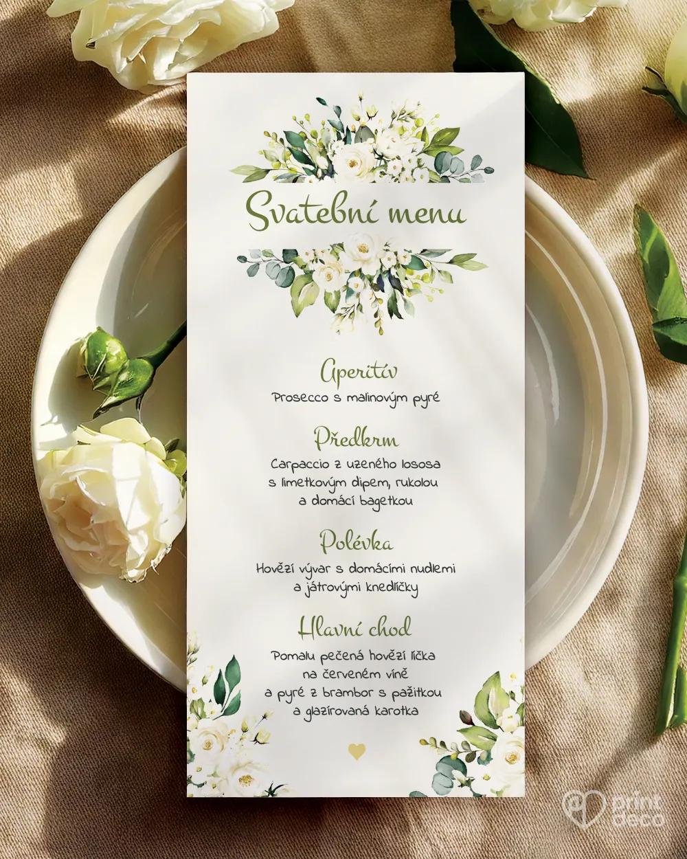 Svatební číslování stolů patří mezi neodmyslitelné dekorace, které hostům usnadní orientaci a zároveň zkrášlí slavnostně prostřené stoly. Můžete si vybrat jednostrannou verzi do rámečku nebo oboustrannou, přehnutou do stříšky, která stojí samostatně. Motiv jemných bílých růží s lístky v tlumených zelených odstínech dodává celé výzdobě romantický a elegantní nádech. Číslování stolů zároveň prakticky rozdělí hosty a doplní atmosféru celé oslavy. Vysoce kvalitní tisk, expresní výroba a možnost sladit s dalšími svatebními tiskovinami, jako jsou jmenovky, etikety, magnetky či menu, zajistí dokonalý dojem.