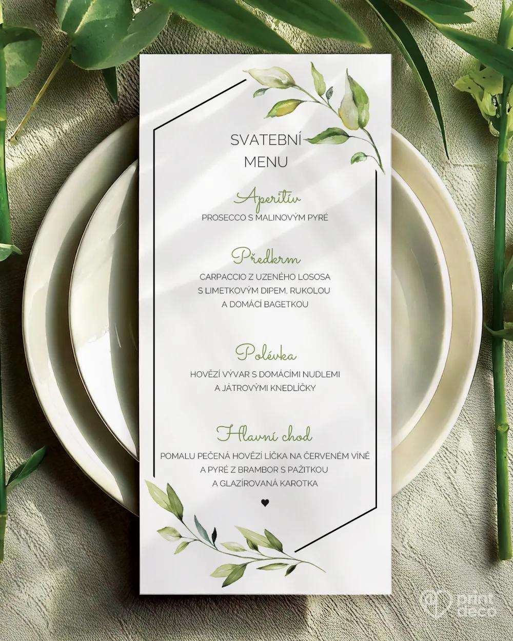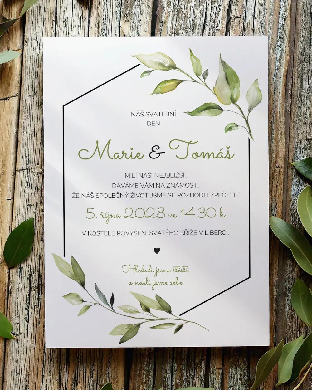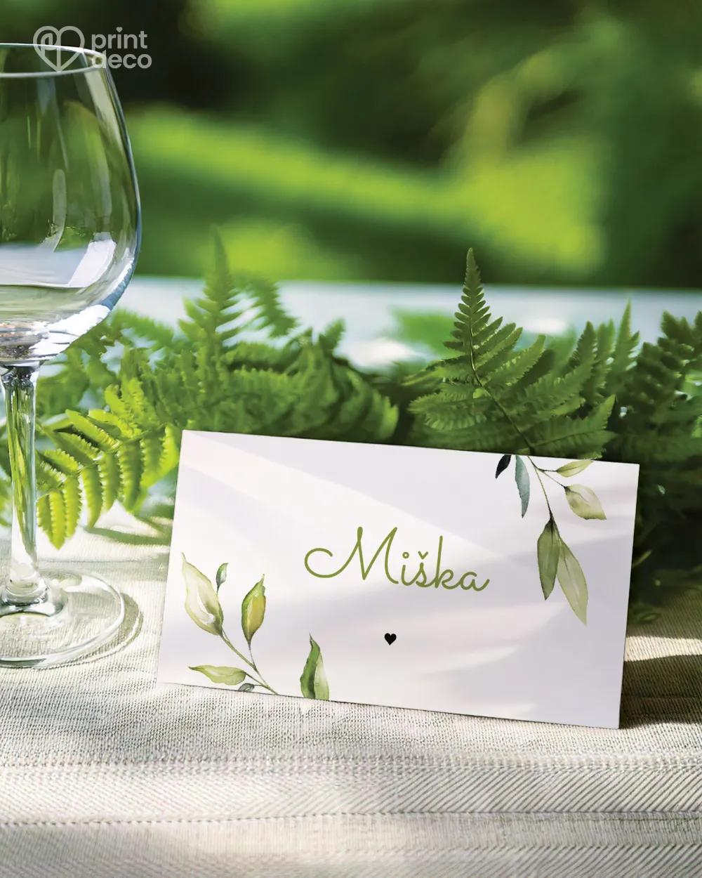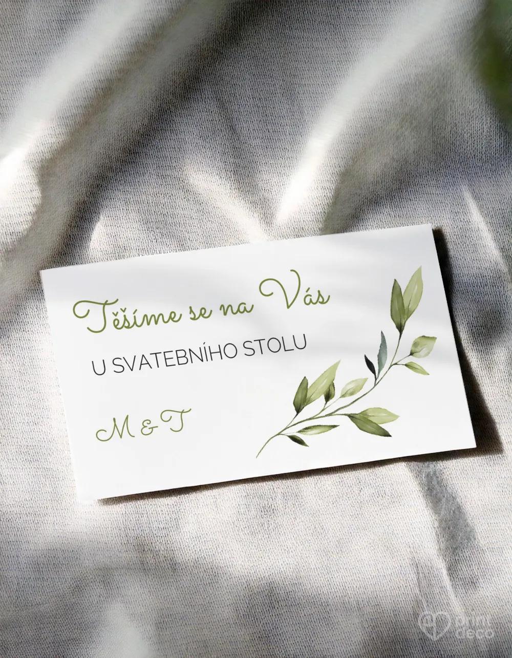 Minimalistická čísla na stoly s motivem greenery jsou ideálním doplňkem svatební výzdoby v svěžím přírodním duchu. Elegantní bílý podklad s akvarelovými zelenými lístky a jemným geometrickým rámečkem krásně zapadne k moderním, boho i rustikálním aranžmá. Čísla jsou vyhotovena na praktických stříškových kartičkách, které jednoduše umístíte přímo na stůl. Motiv můžete sladit i s dalšími svatebními tiskovinami z naší nabídky — jmenovkami, menu, etikety či magnetkami. Samozřejmostí je kvalitní tisk a expresní výroba.