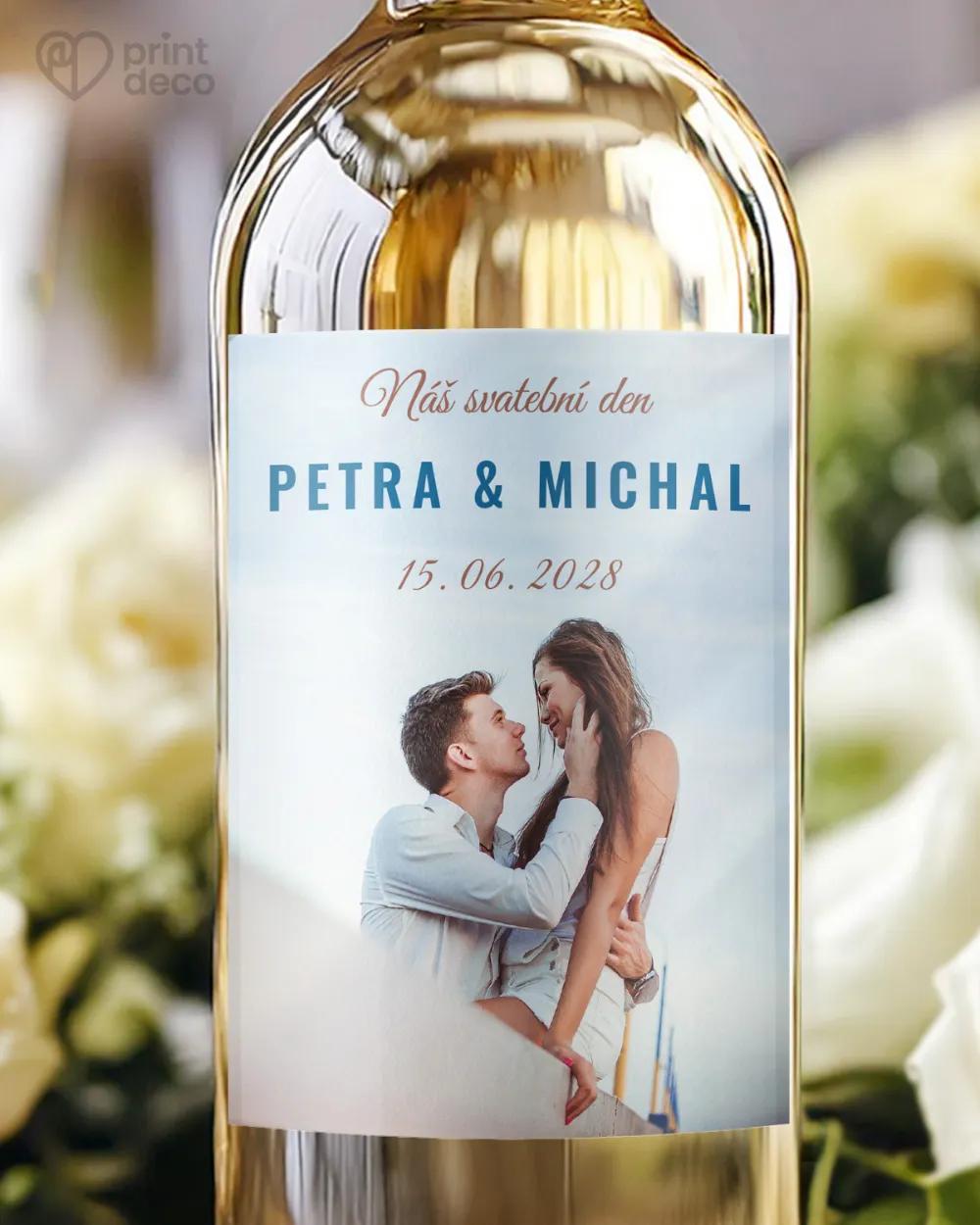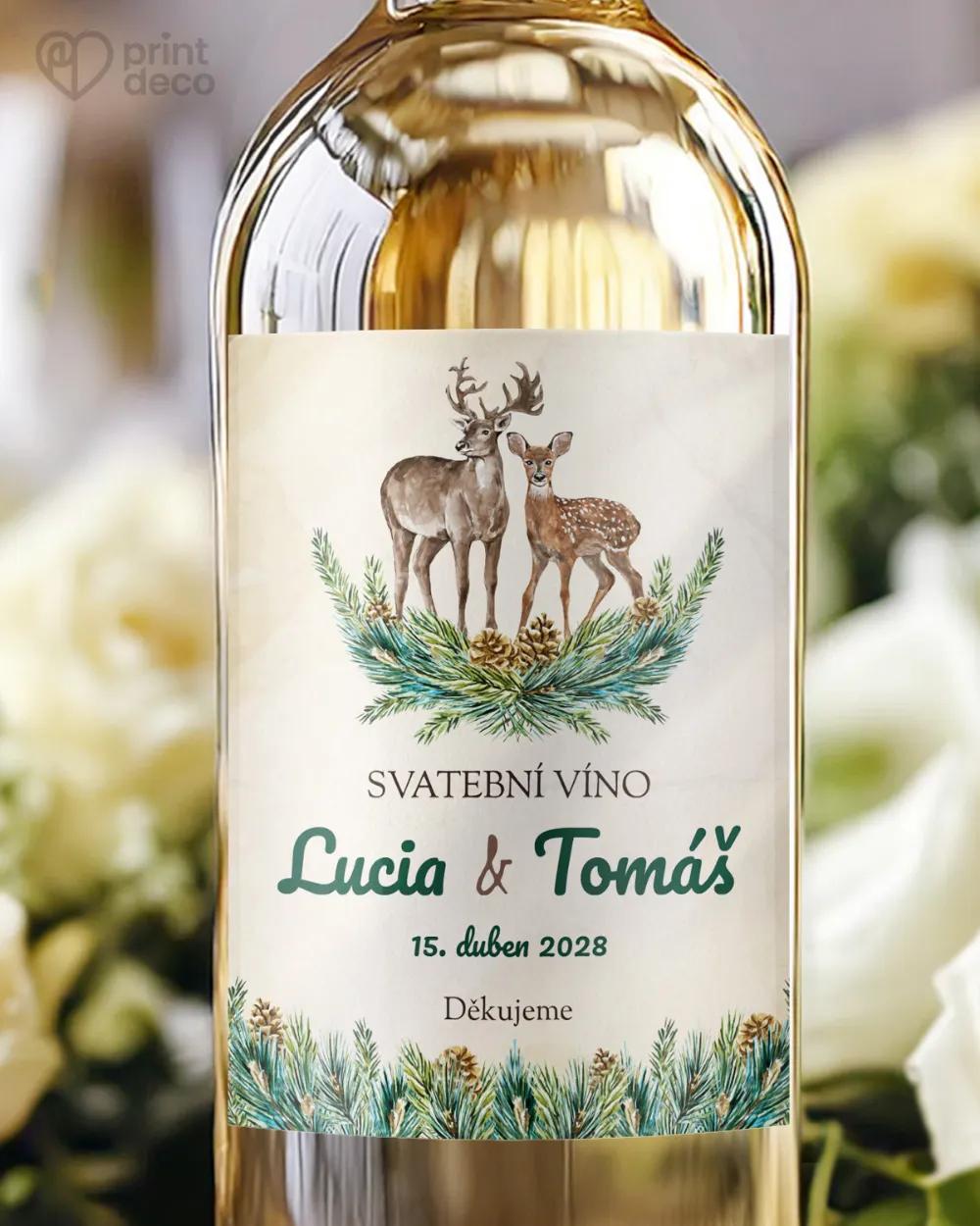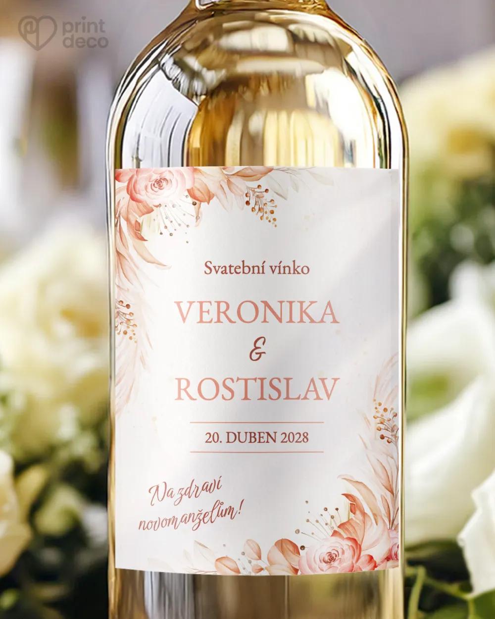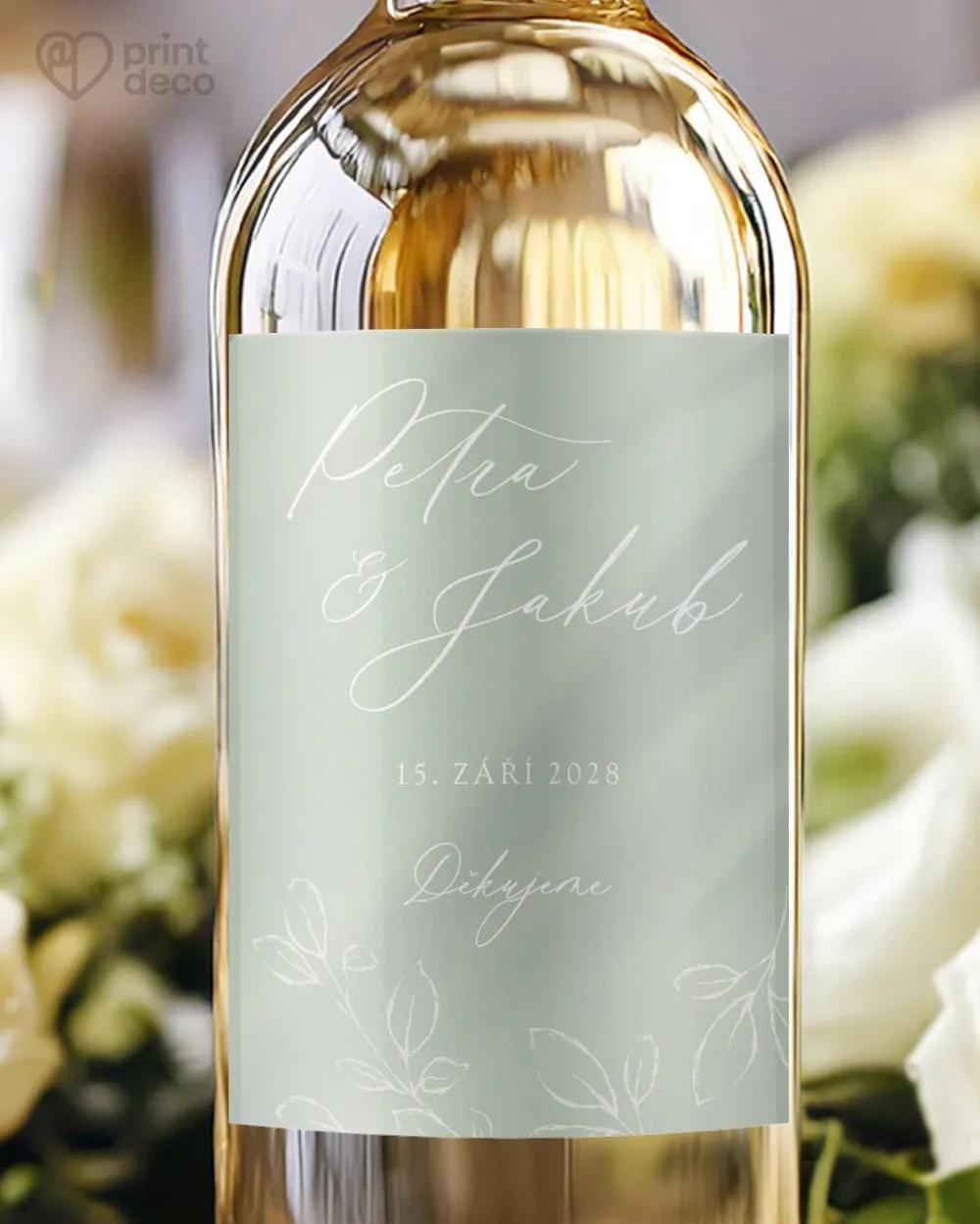 Etikety na svatební víno i pálenku s motivem romantické louky Kapitola lásky. Elegantní dekorace na výslužky pro hosty a zároveň něžný doplněk svatebního stolu.